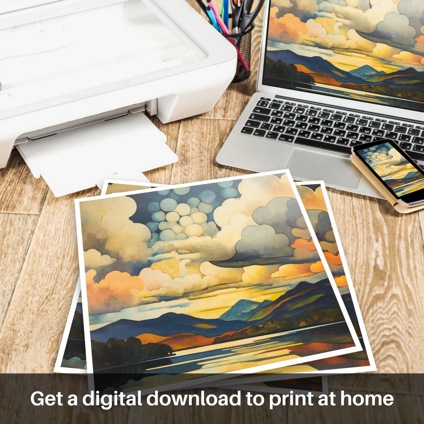 This print, part of the 'Loch Lomond' collection, serves as a contemporary homage to the timeless splendour of one of Scotland's most iconic landscapes. It beckons to be a centrepiece, sparking contemplation and conversation, an abstract rendition that will elevate any space with its arresting charm and imaginative flair.
