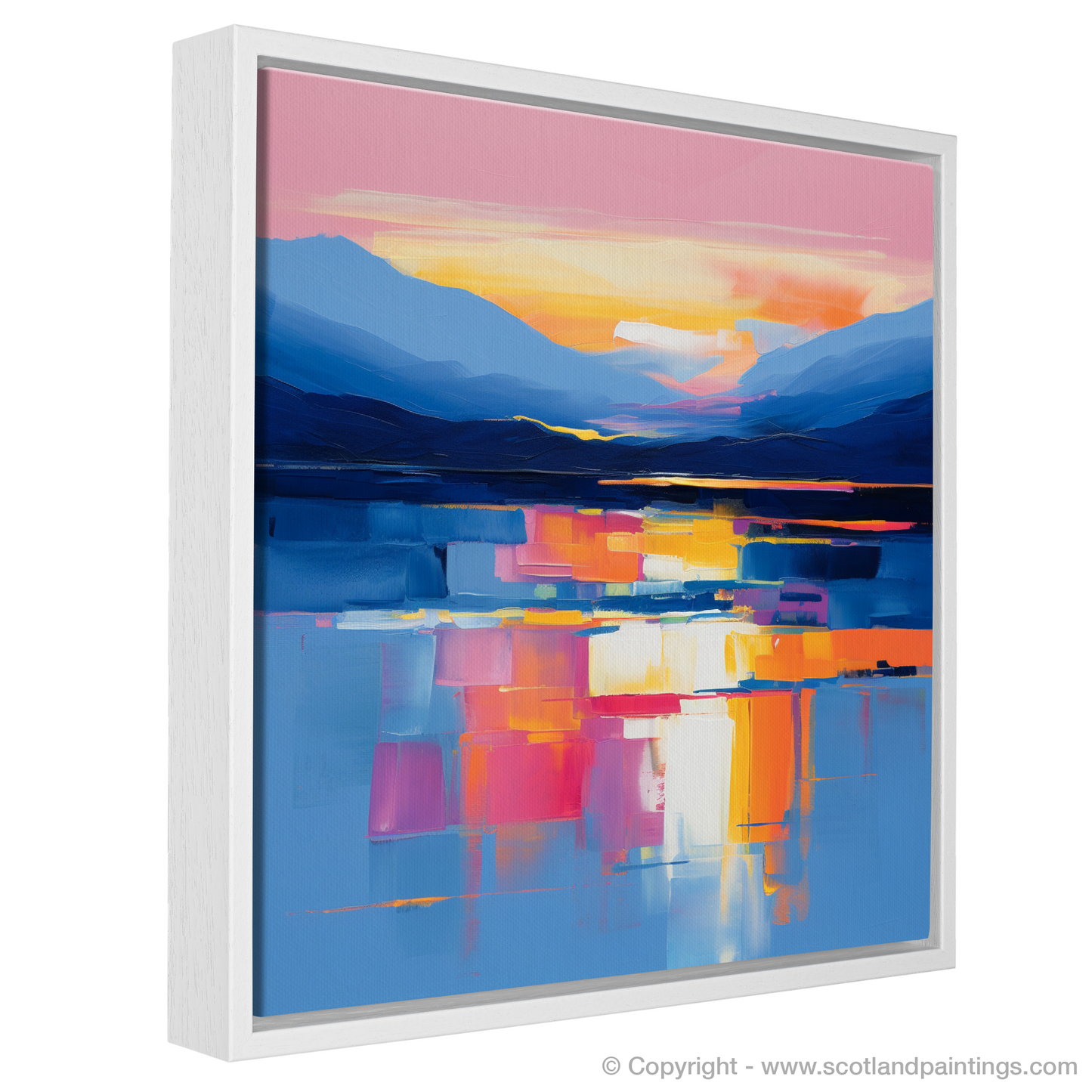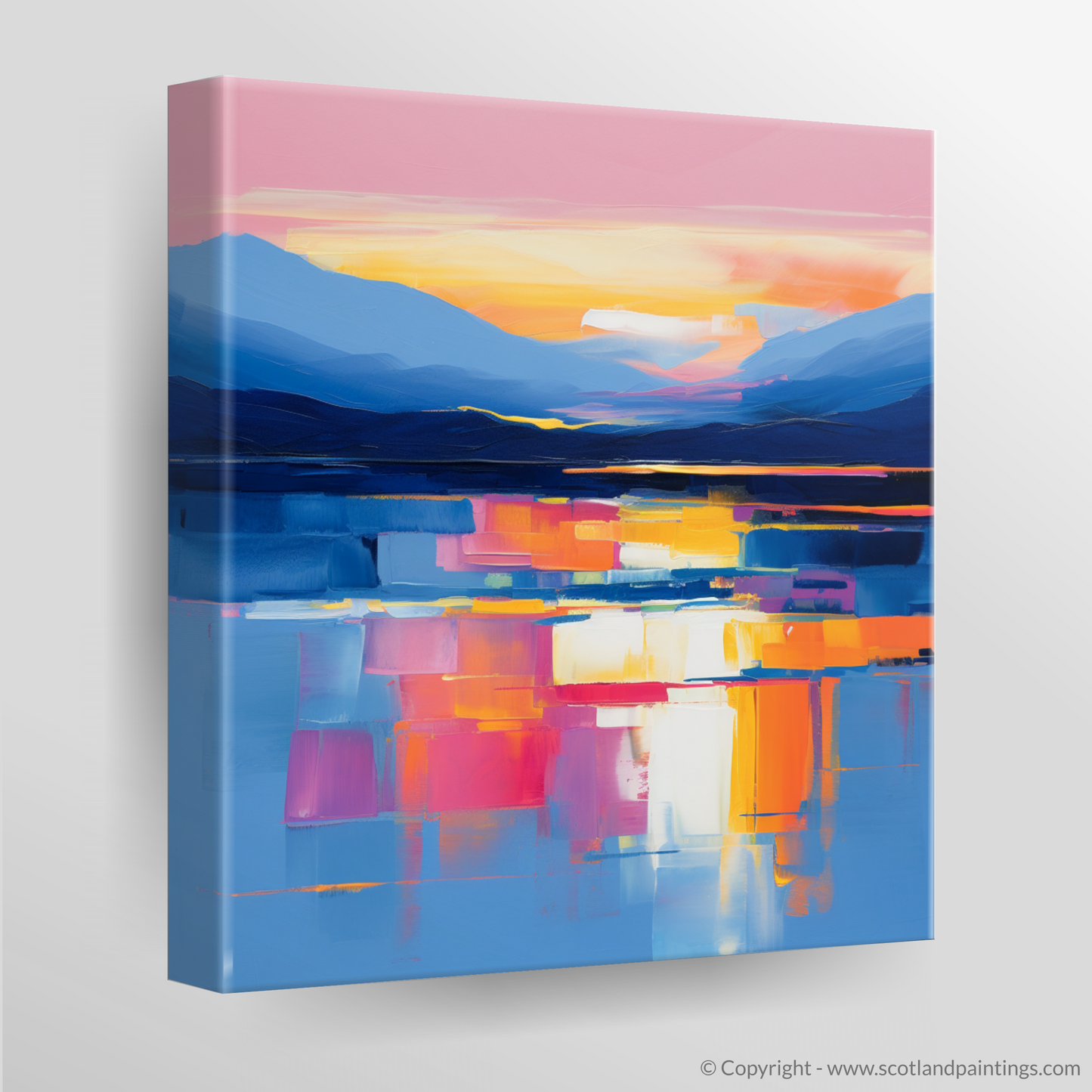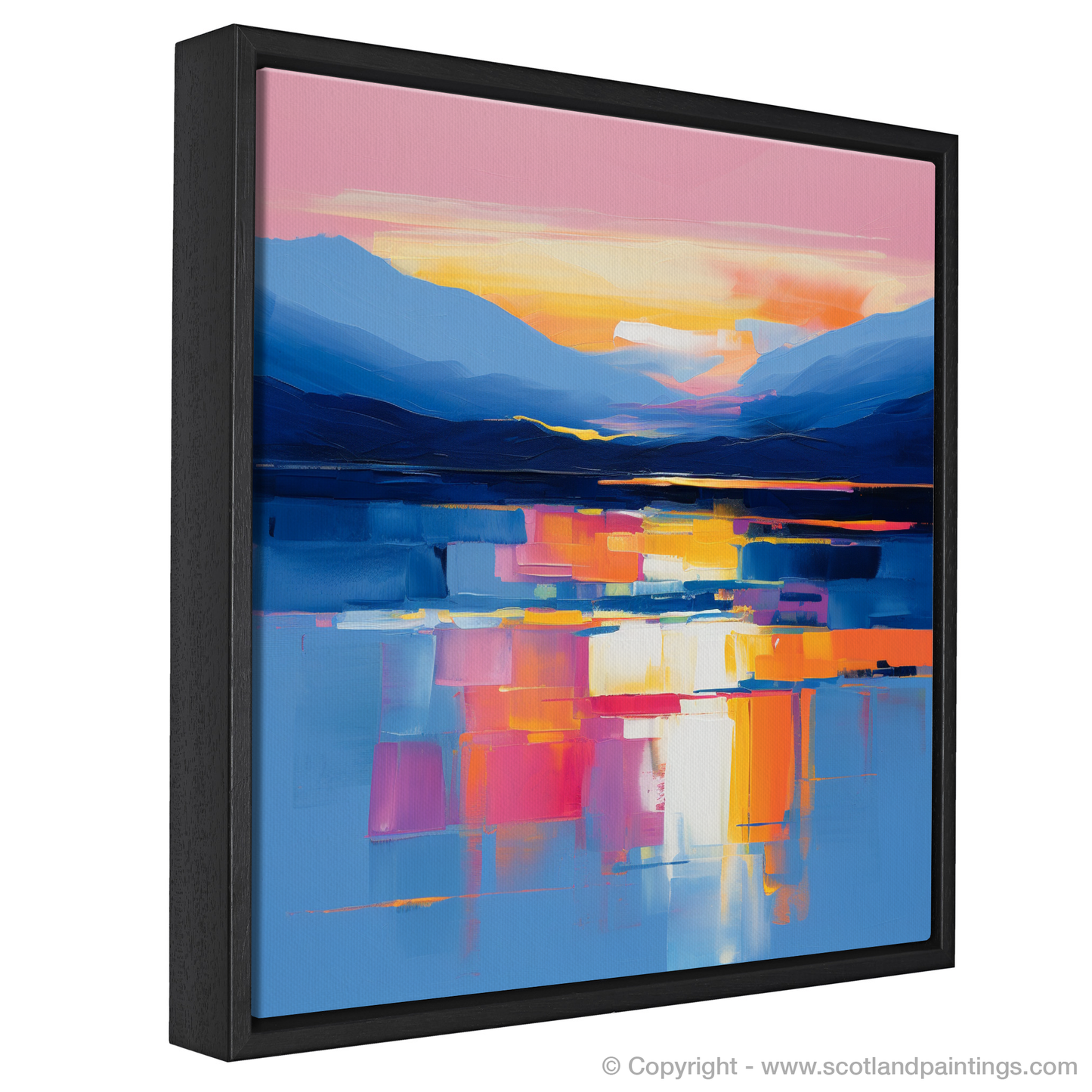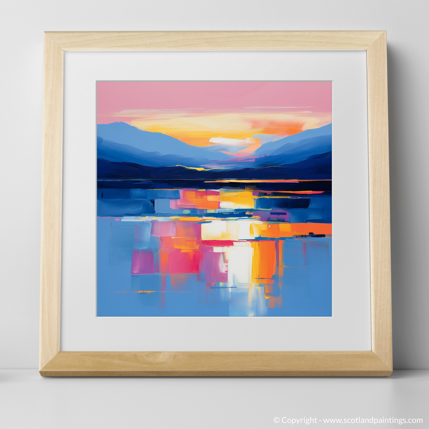 Capturing the essence of tranquillity at the twilight hour, this abstract print offers a symphony of colour and light inspired by the serene beauty of Loch Lomond at dusk. The piece is a masterful array of vibrant hues, reflecting the fleeting moments when day gives way to night.