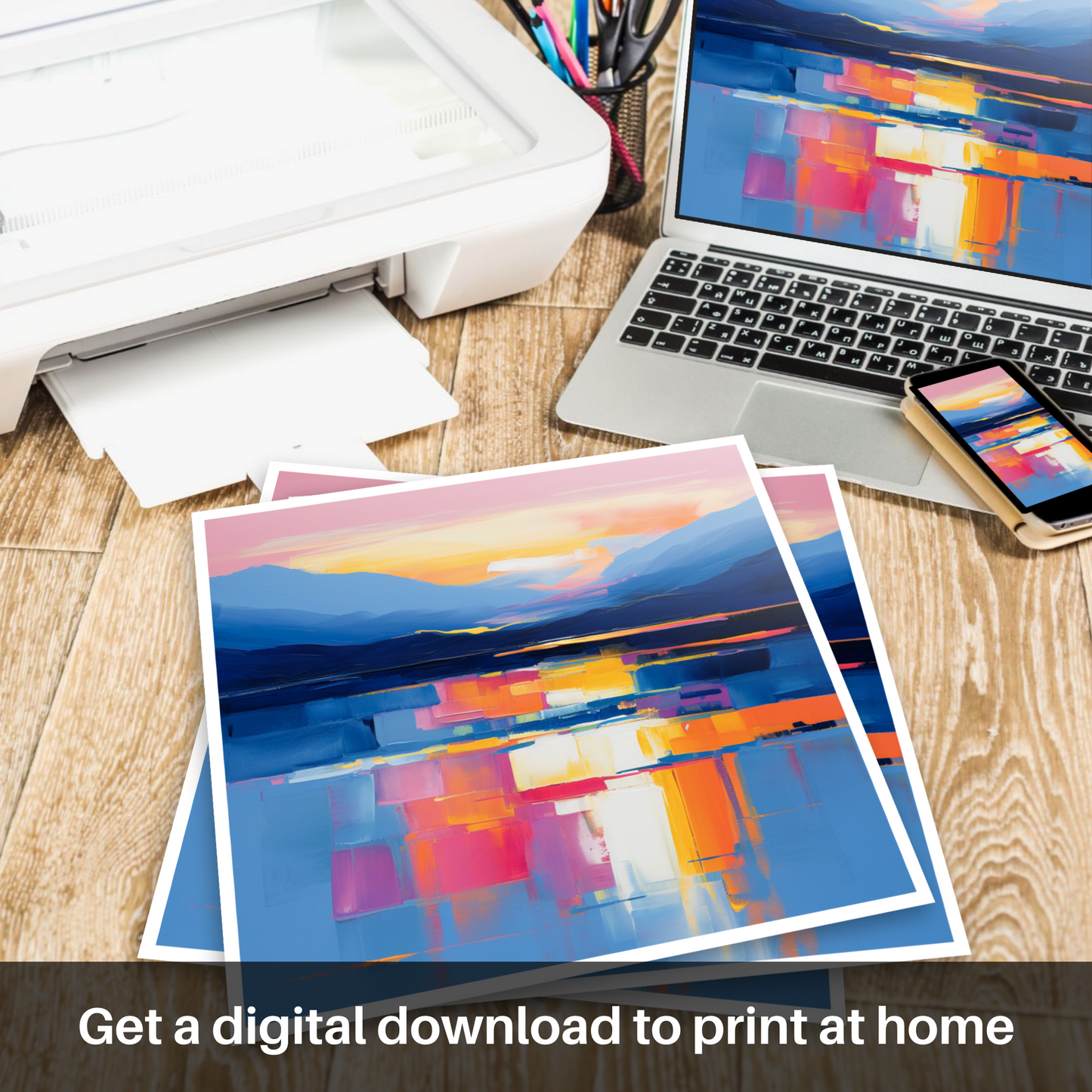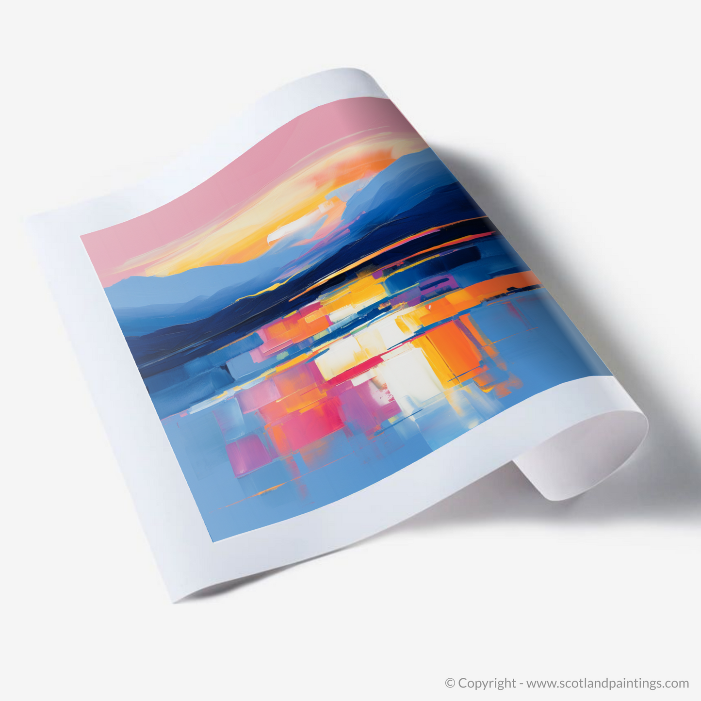 This print does not simply depict a landscape; it evokes the ephemeral quality of sunset over Loch Lomond, inviting viewers to project their own thoughts and emotions onto the canvas, and to find a moment of respite in its depths. Ideal for those who appreciate the boldness of abstract art and the understated beauty of Scotland's natural landscapes, this print is a sublime addition to any space seeking a touch of contemporary flair and introspective calm.