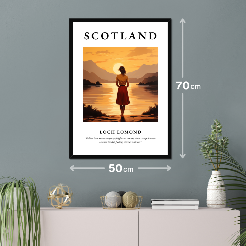 This exquisite framed poster print is a tribute to Scotland’s natural beauty, featuring a stunning Realism painting of Loch Lomond. Measuring a generous 50cm x 70cm, it commands attention and transforms any space into a window to the serene Scottish Highlands. With the option of a black, white, or natural wood-effect frame, it fits seamlessly into any decor style, providing a touch of elegance without breaking the bank.