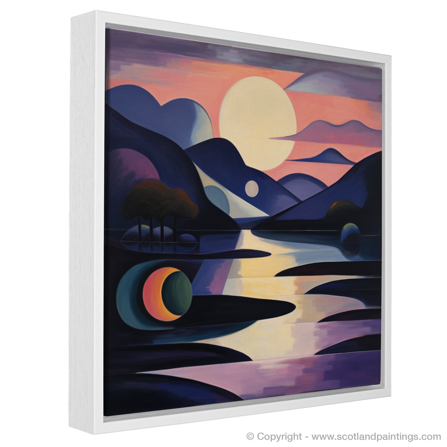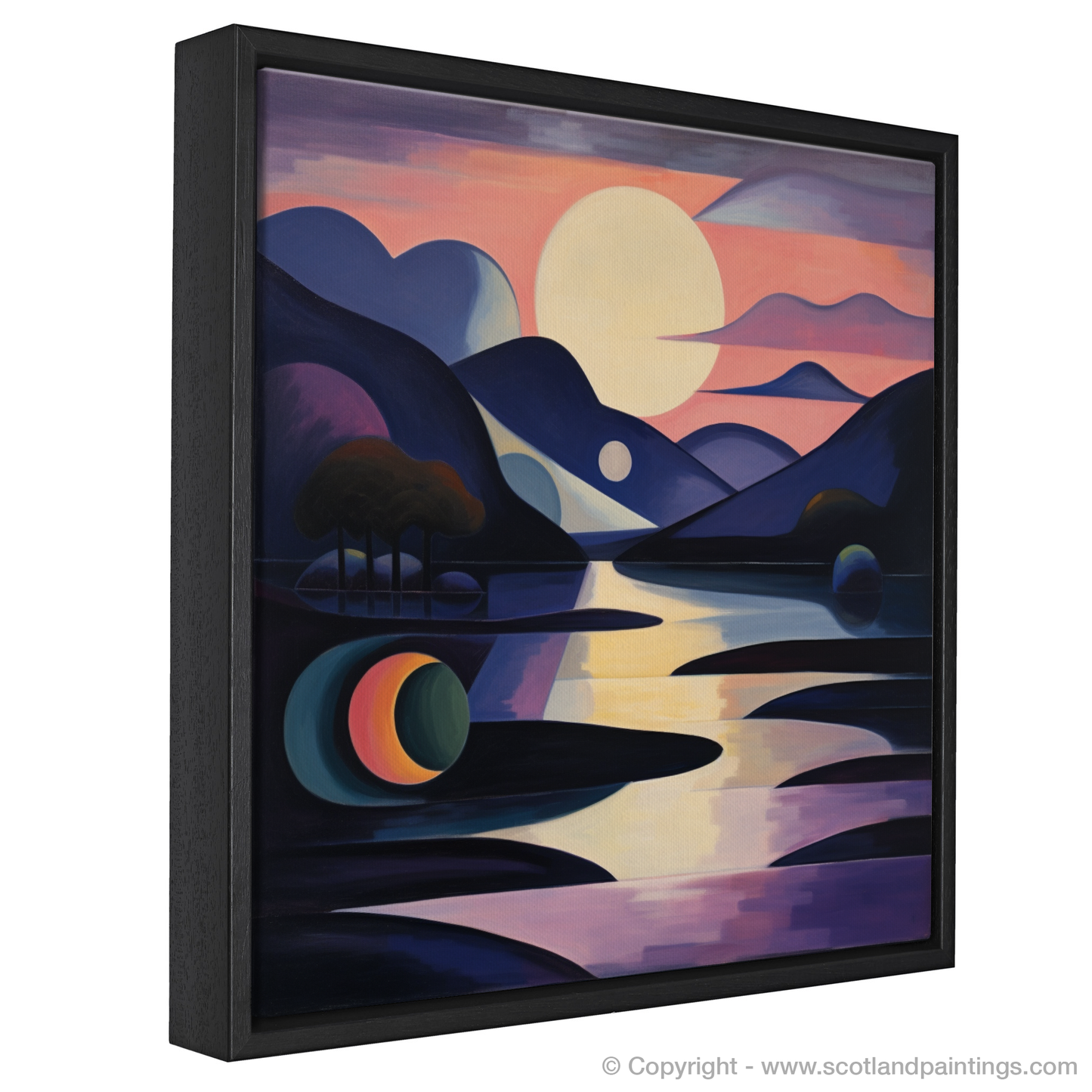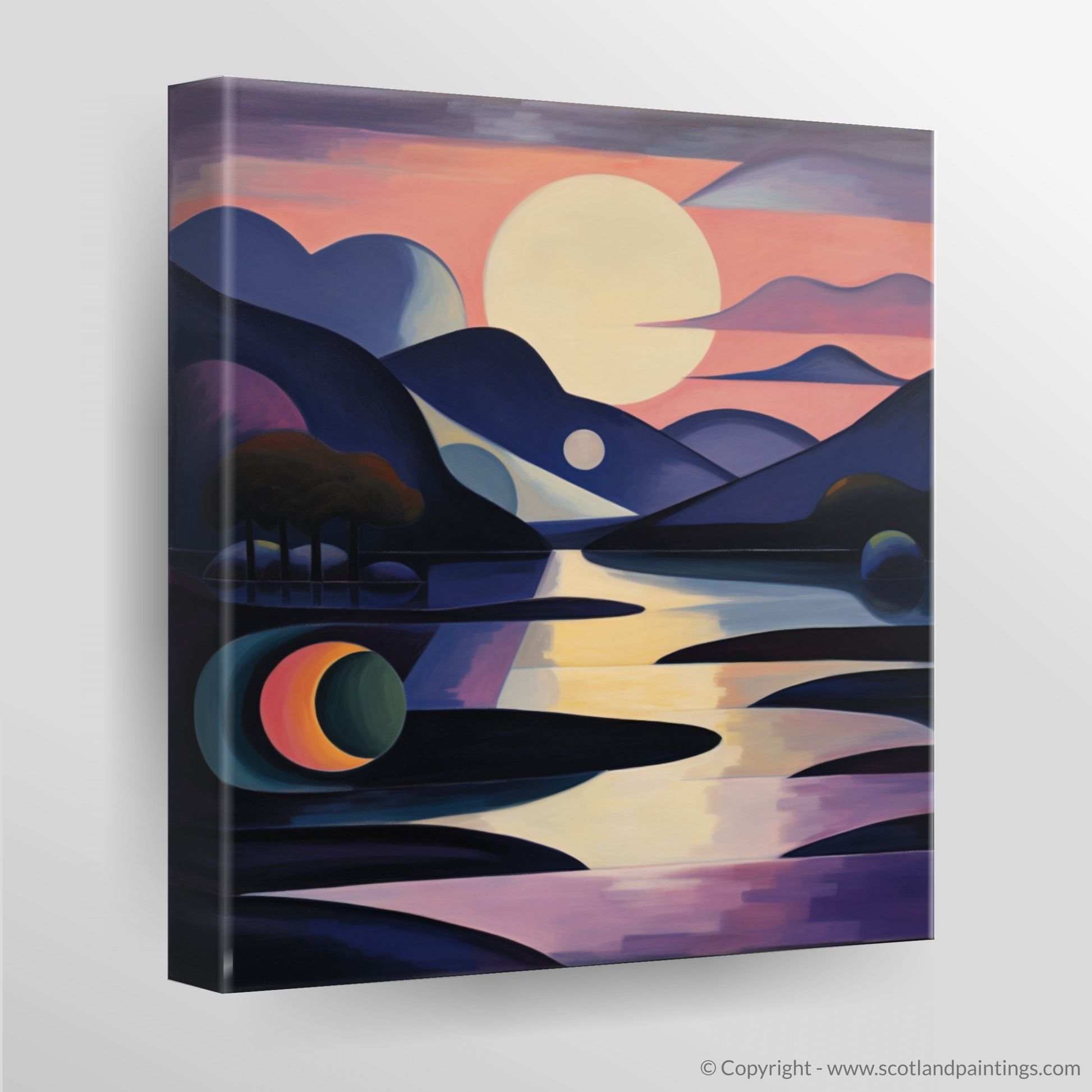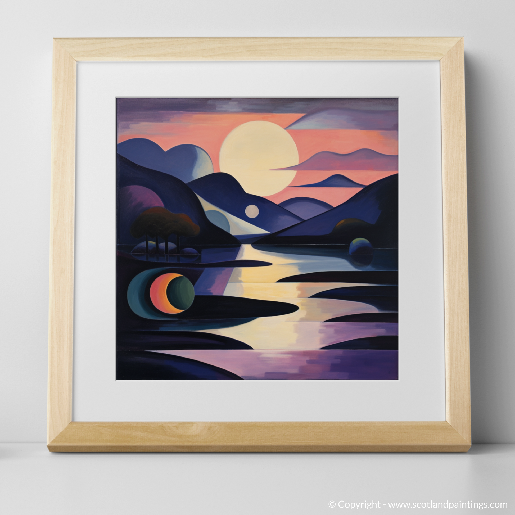 This captivating print is a celebration of the serene and mystical beauty of Loch Lomond, interpreted through the lens of abstract art. The composition captures the essence of twilight as it reflects on the tranquil waters, with a harmonious blend of curved and geometric shapes creating a dynamic yet soothing visual experience.