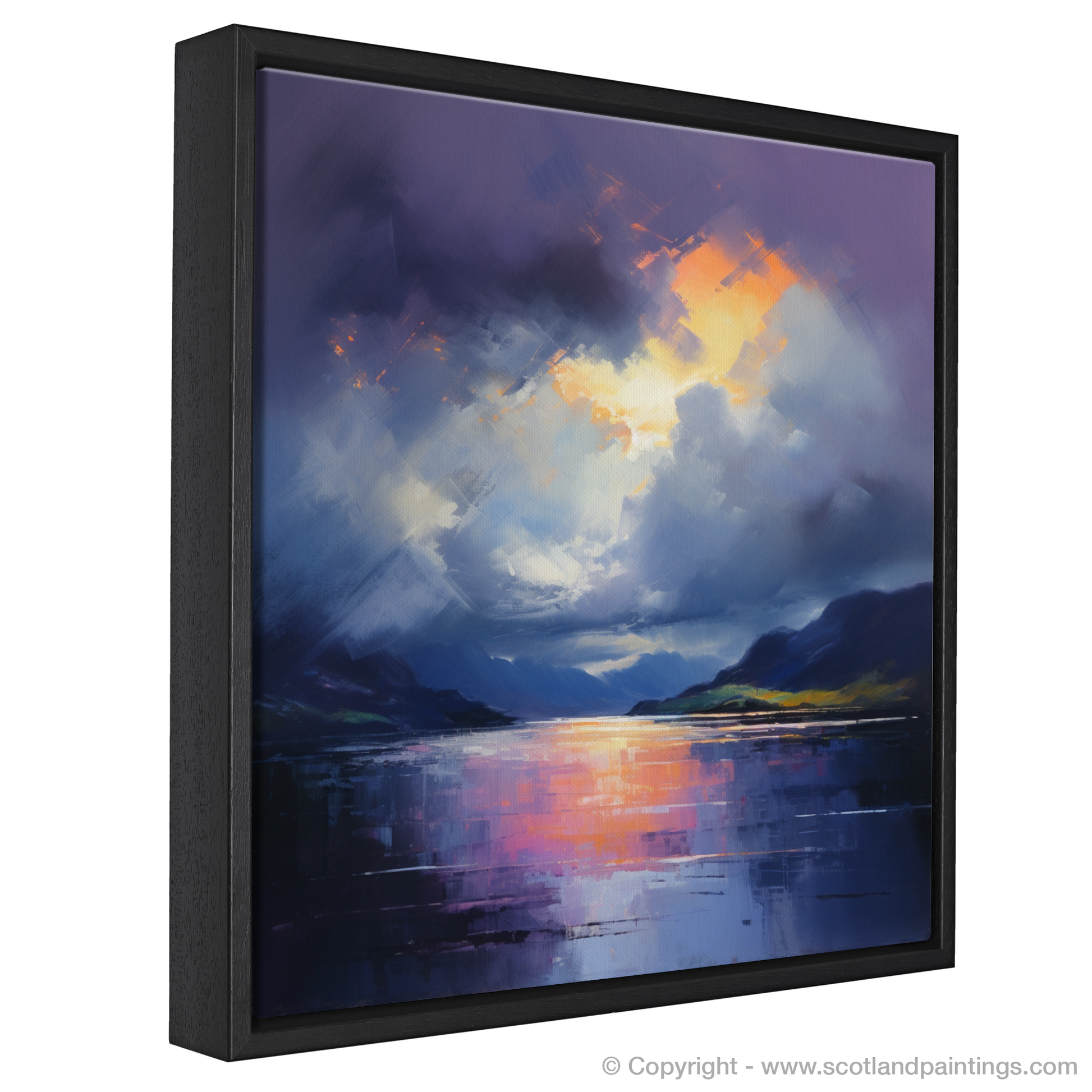 This captivating print, hailing from our 'Loch Lomond' collection, channels the dynamic beauty of Expressionism to illustrate the intense interplay between light and darkness as storm clouds brood over the picturesque Loch Lomond. Dominated by a turbulent sky, where strokes of deep violet and blue clash with fiery oranges and yellows, the image captures the essence of nature's ephemeral moods.