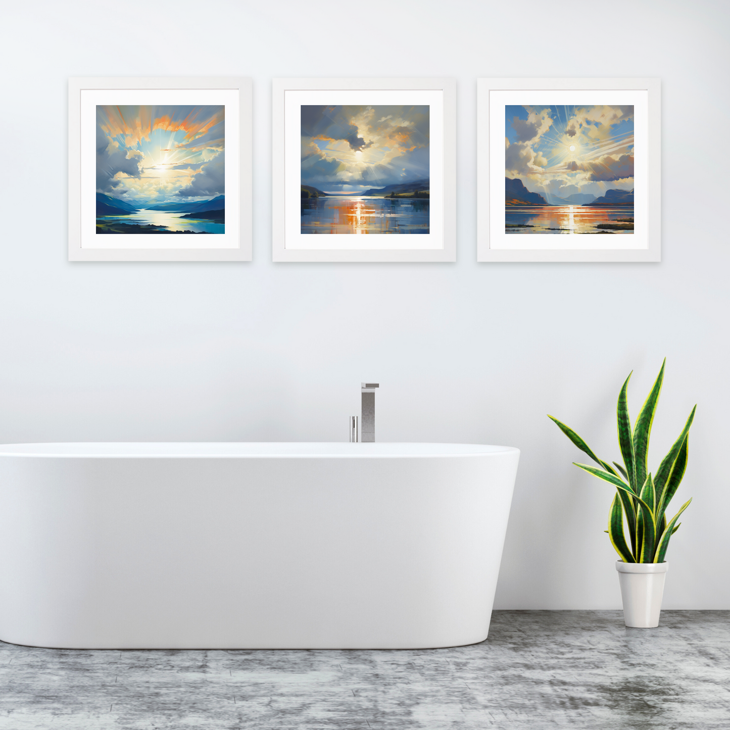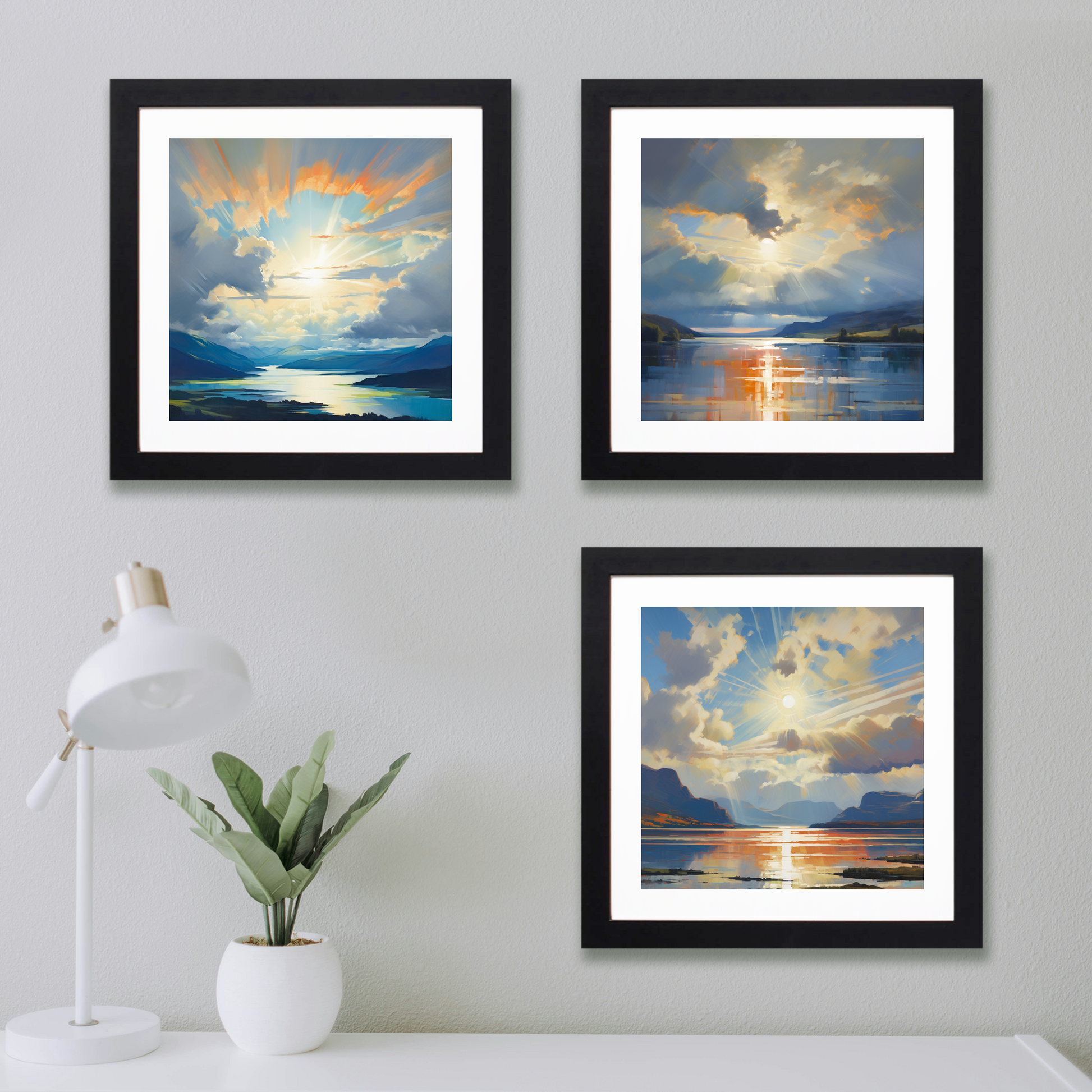Sun rays through clouds above Loch Lomond - Set of Three Prints