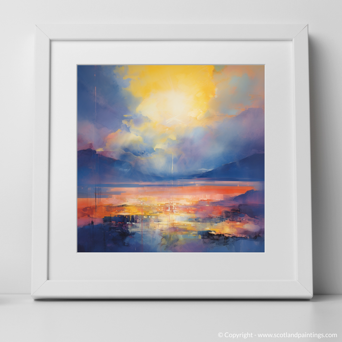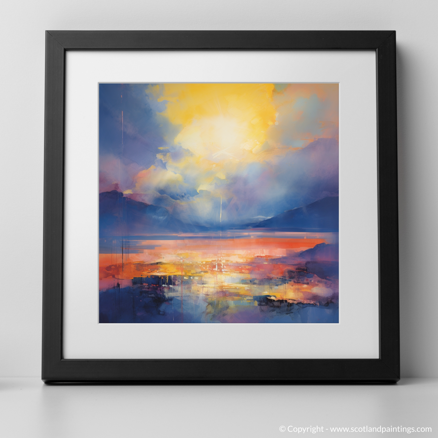 This piece is a testament to the allure of abstraction, inviting the viewer to interpret the liminal space between day and night, reality and reflection, sky and water. It holds within it the quietude of the loch and the majesty of the sky, making it an enchanting addition to any space seeking a touch of atmospheric depth and a burst of invigorating colour.