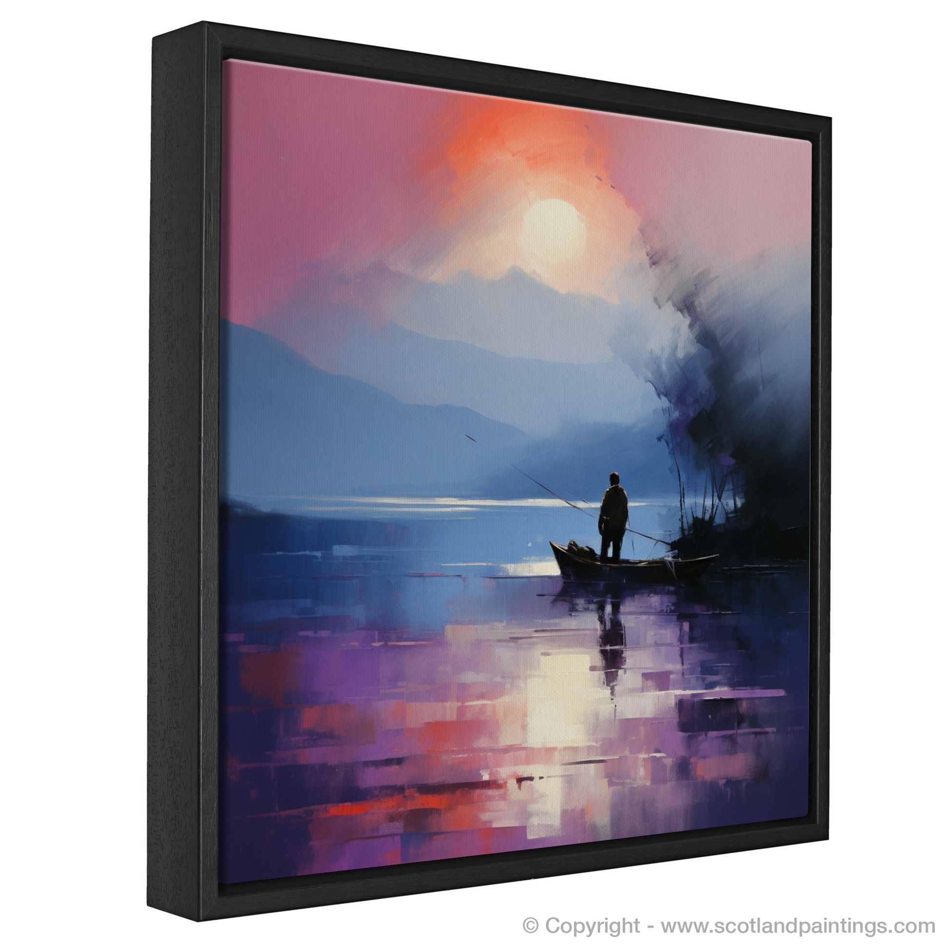 Captured in expressive and vivid strokes, this evocative piece transports viewers to the serene environs of Loch Lomond. The painting highlights a lone fisherman, silhouetted against the backdrop of the tranquil loch as dusk settles over the landscape. The fisherman's poised figure and his boat are shrouded in the deepening shades of twilight, conjuring a sense of peaceful solitude.