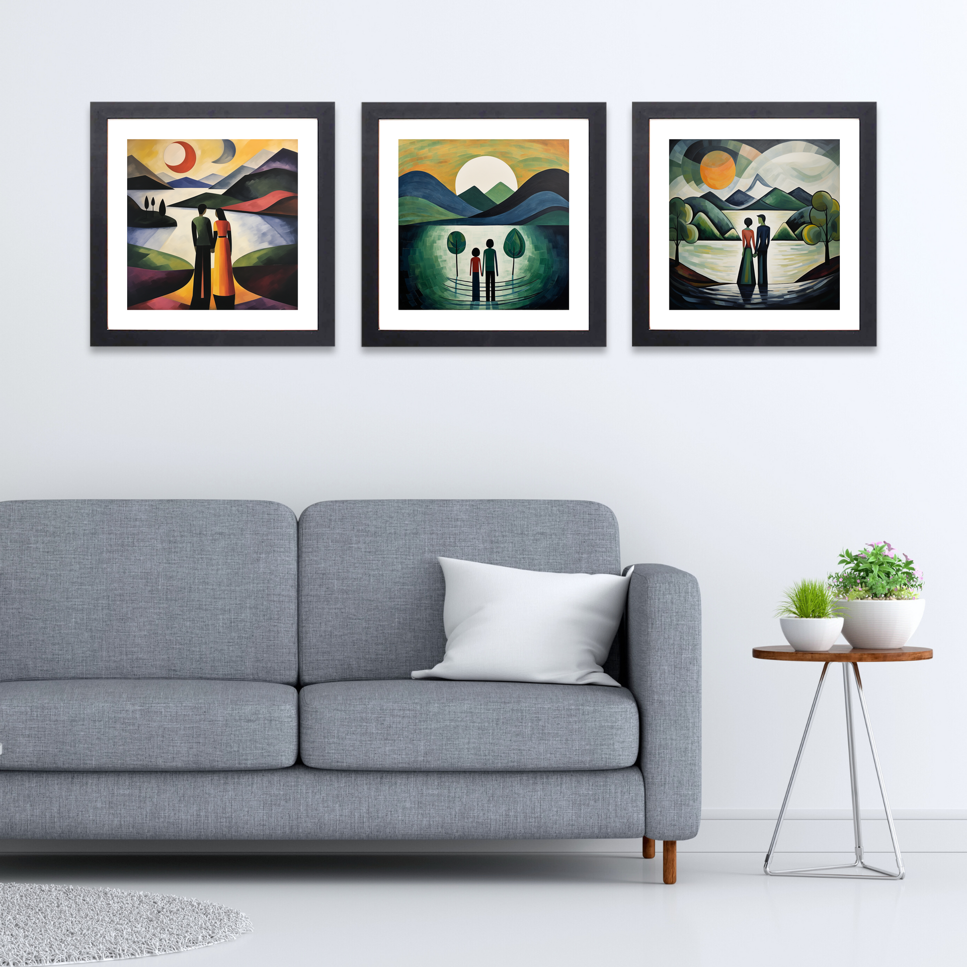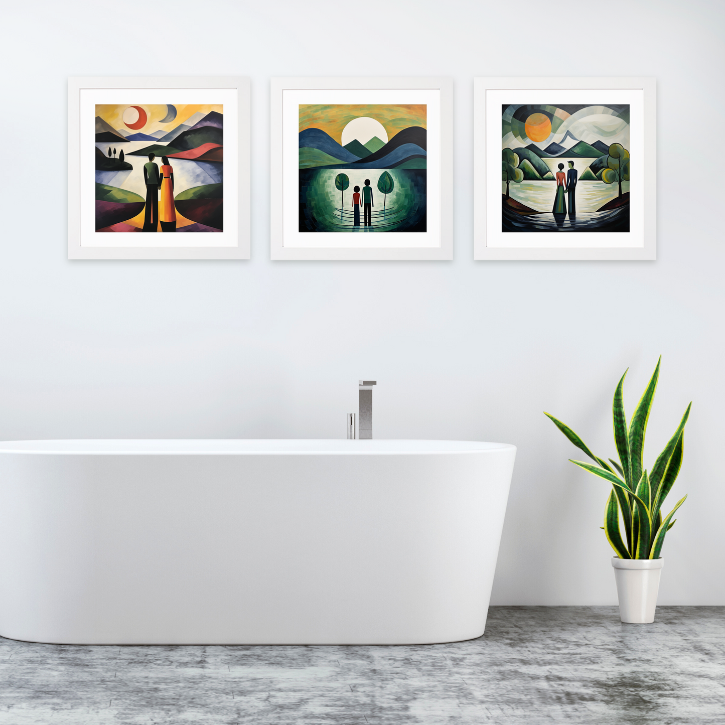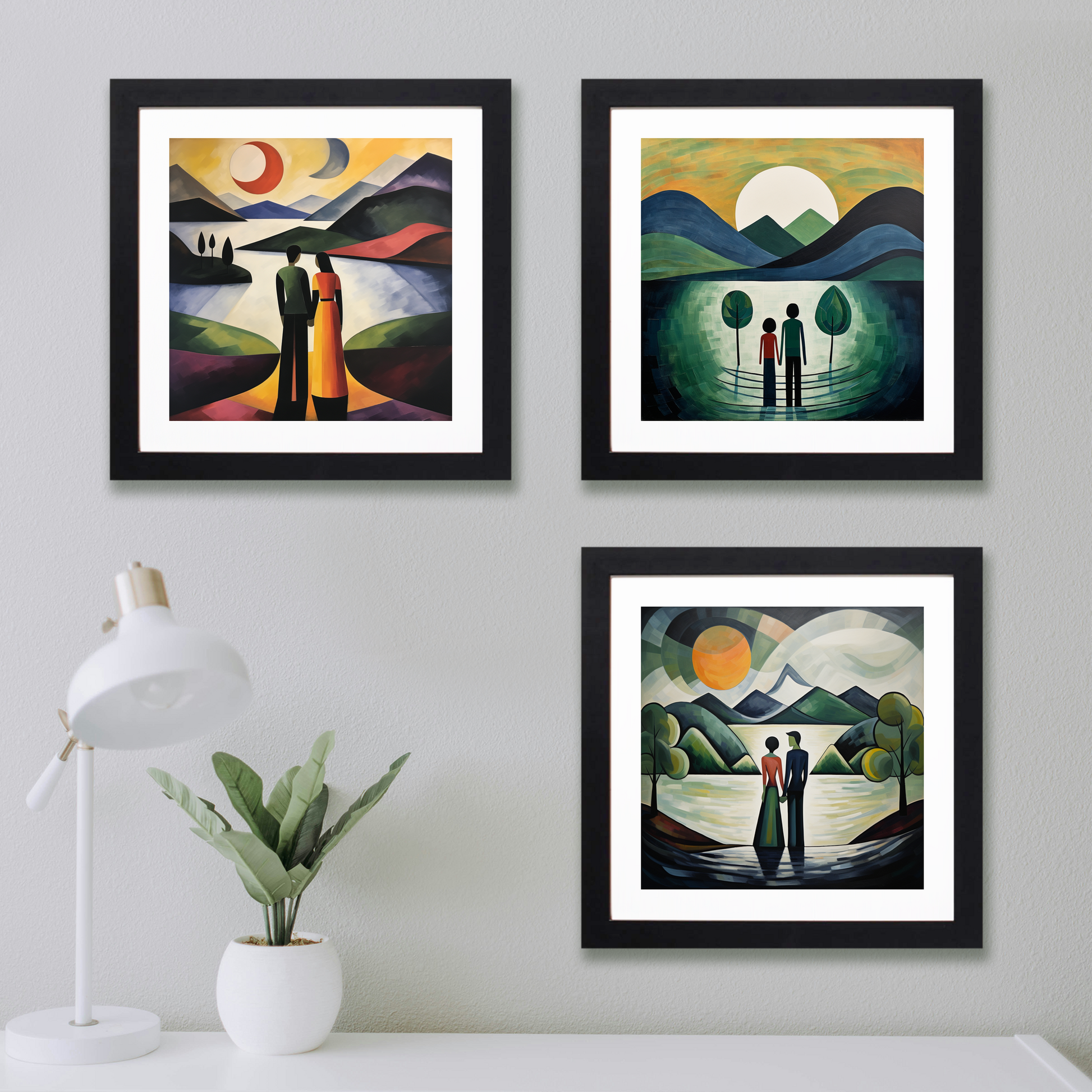 A couple holding hands looking out on Loch Lomond - Set of Three Prints