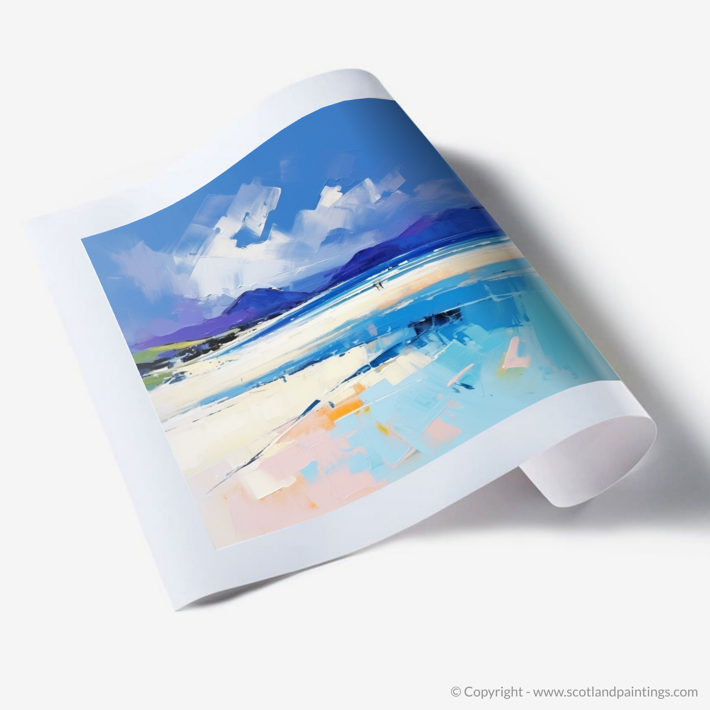 As a part of the 'Scottish Beaches' collection, this print encapsulates the untamed spirit of Scotland's natural beauty, rendered with an expressionist flair that will add a touch of drama and emotional intensity to any space.