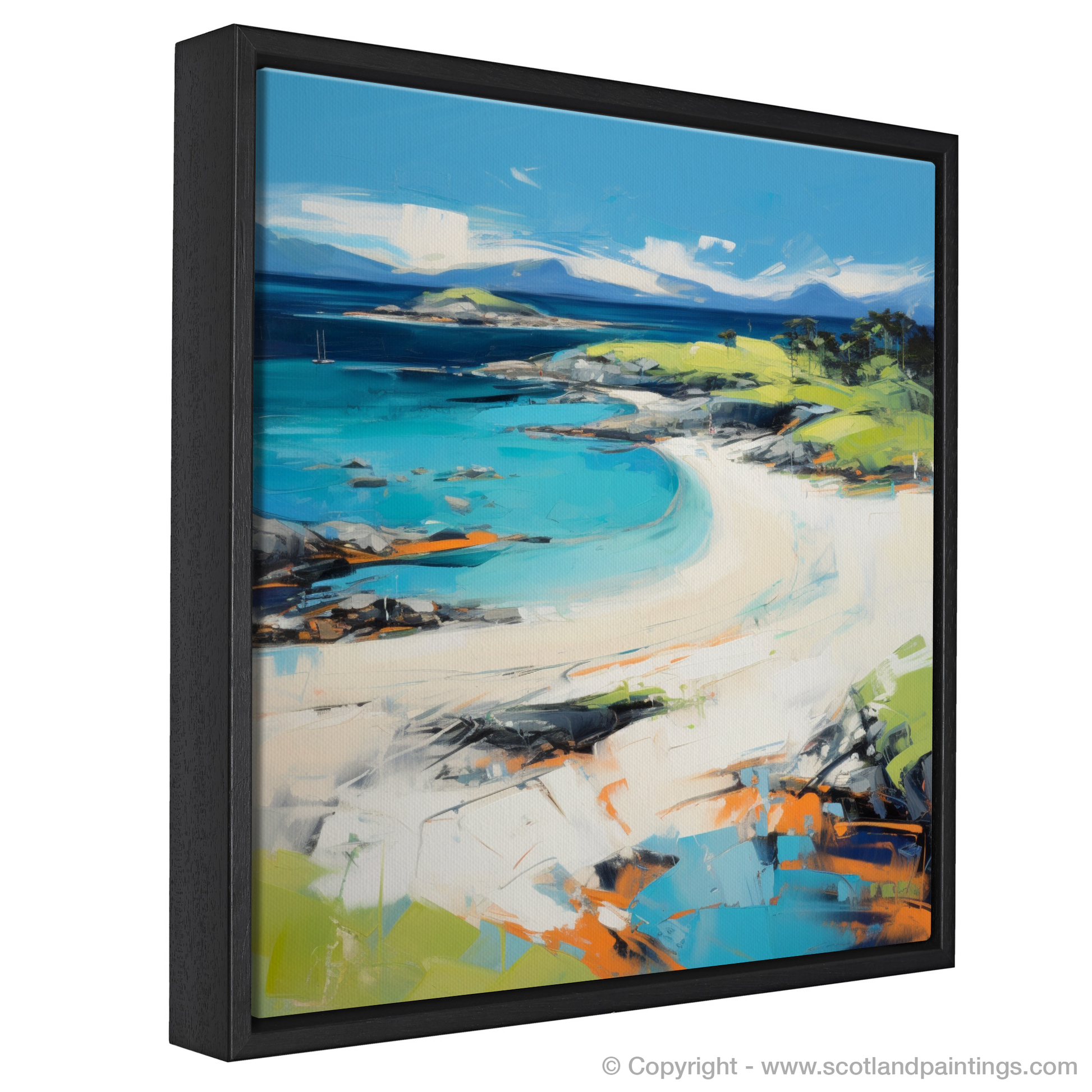 Captured within this vibrant print is the essence of Camusdarach Beach, a stunning coastal gem nestled in Arisaig. The artwork is a symphony of dynamic brushstrokes and a kaleidoscope of colours, embodying the spirit of Abstract Impressionism. Hues of azure and cerulean dance across the canvas, evoking the clear and inviting waters of the Scottish shore, while bold sweeps of white and vanilla recall the pristine sandy beaches that are characteristic of Camusdarach's breathtaking scenery.