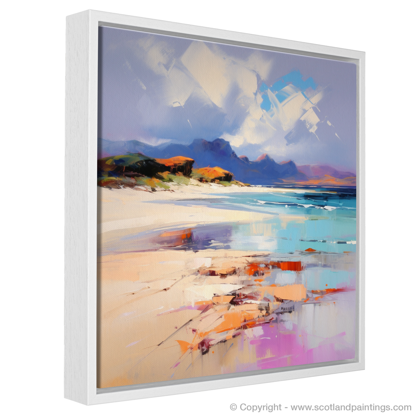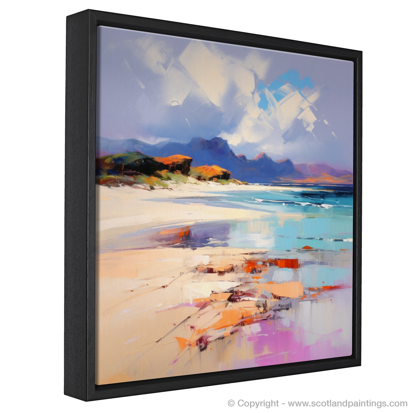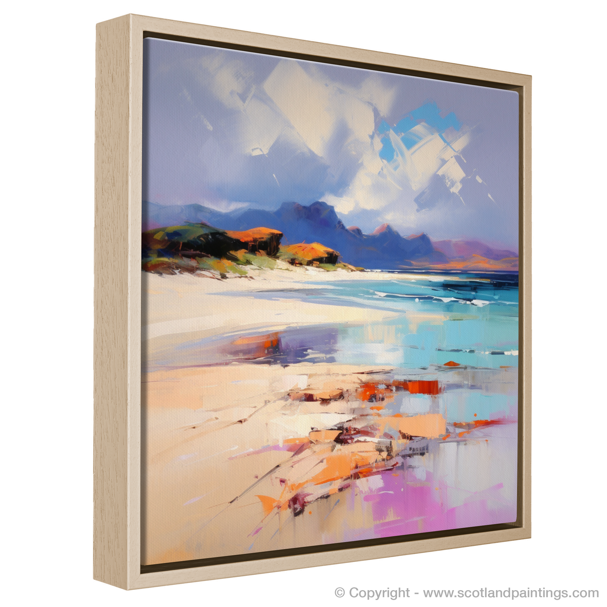 Experience the rugged beauty of Camusdarach Beach through this captivating print, a masterpiece that embodies the essence of Scottish coastal landscapes. The vivid strokes and passionate use of colour synonymous with Expressionism bring the scene to life, rendering the untamed charm of Arisaig in a way that stirs the soul.