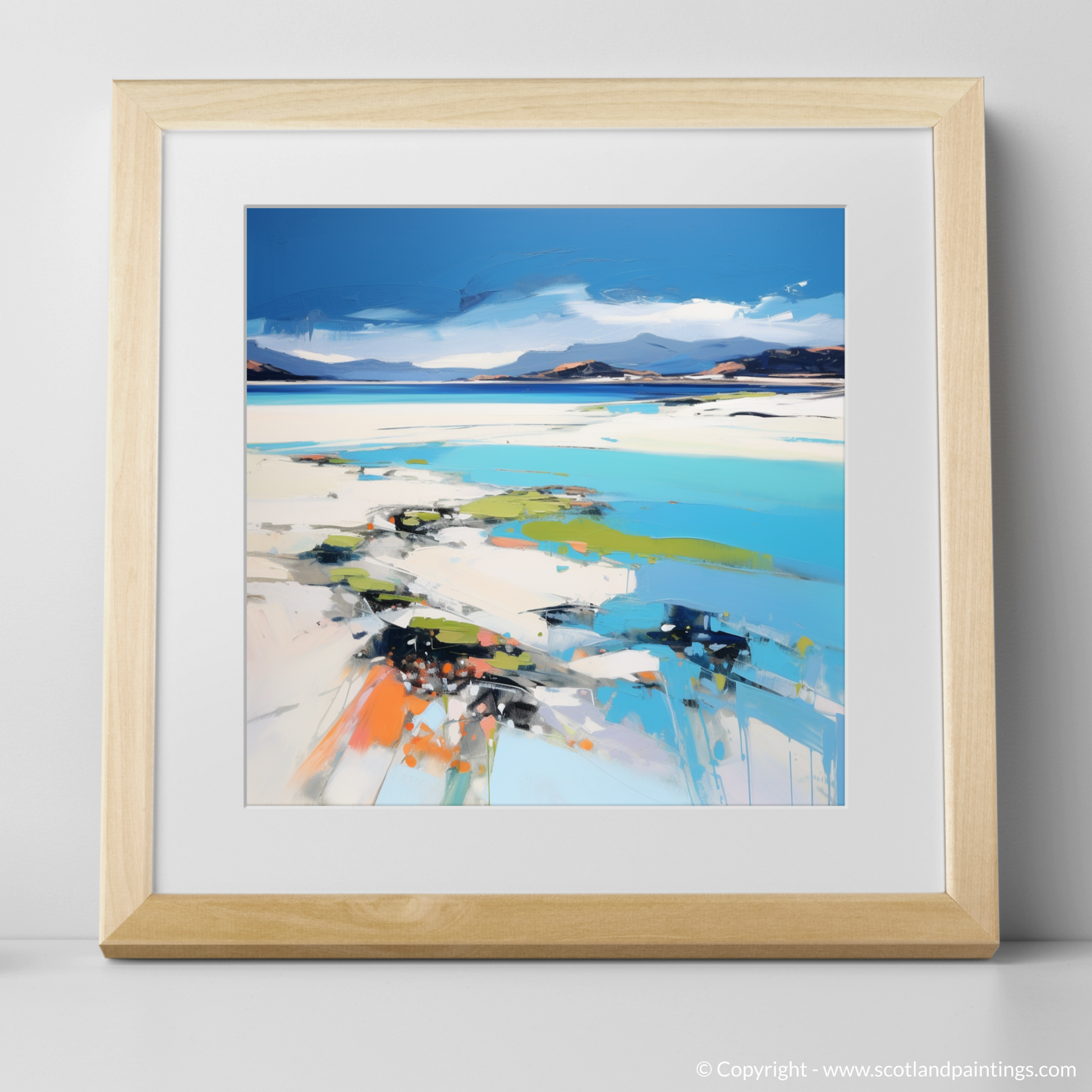 Every sweep and dab of paint works together to evoke the unique atmosphere of Camusdarach Beach, making it not just a visual depiction but an emotional interpretation of the Scottish coast's natural splendour. This print will make a striking statement piece, inviting viewers to revel in the beauty of Scotland's shores from the comfort of their own space.
