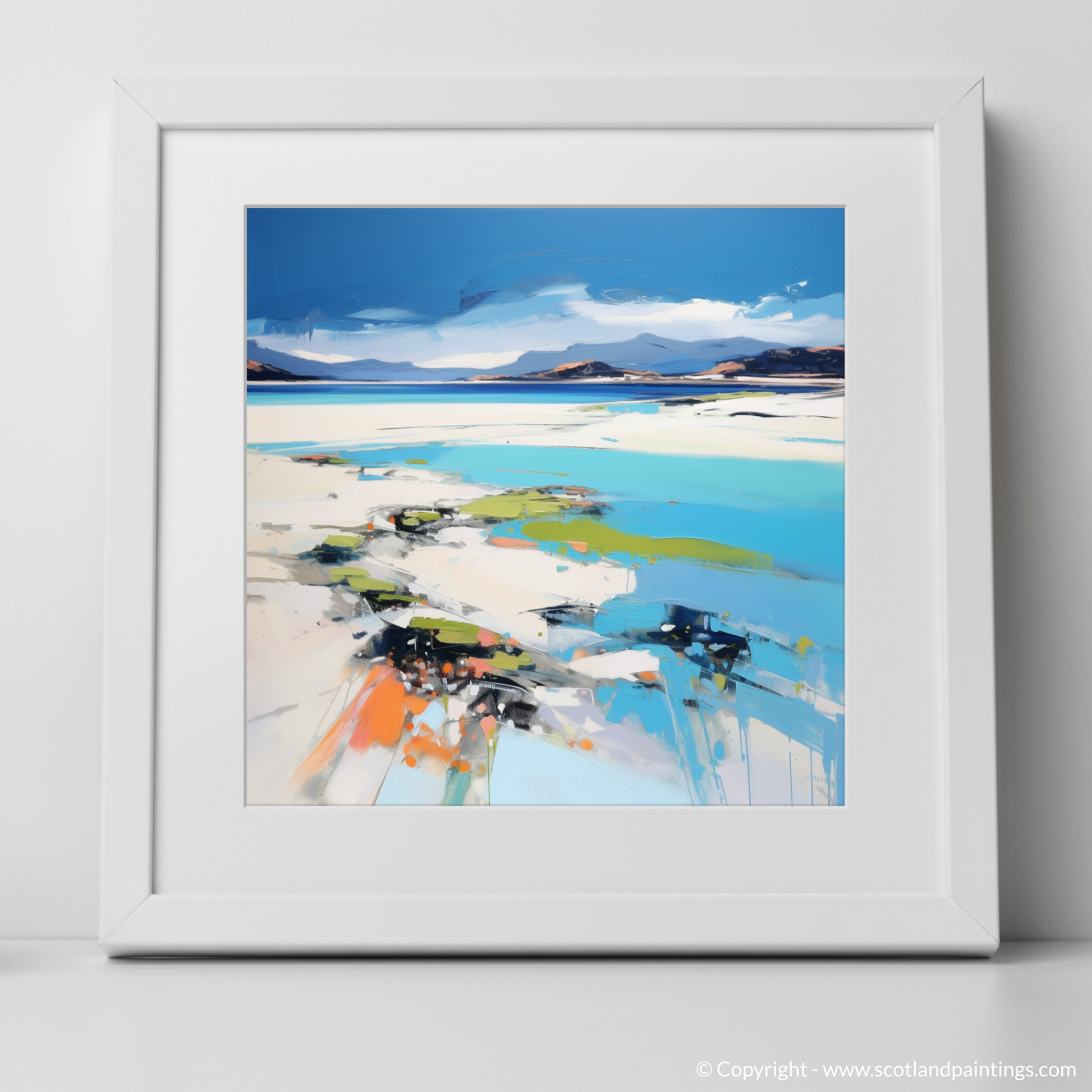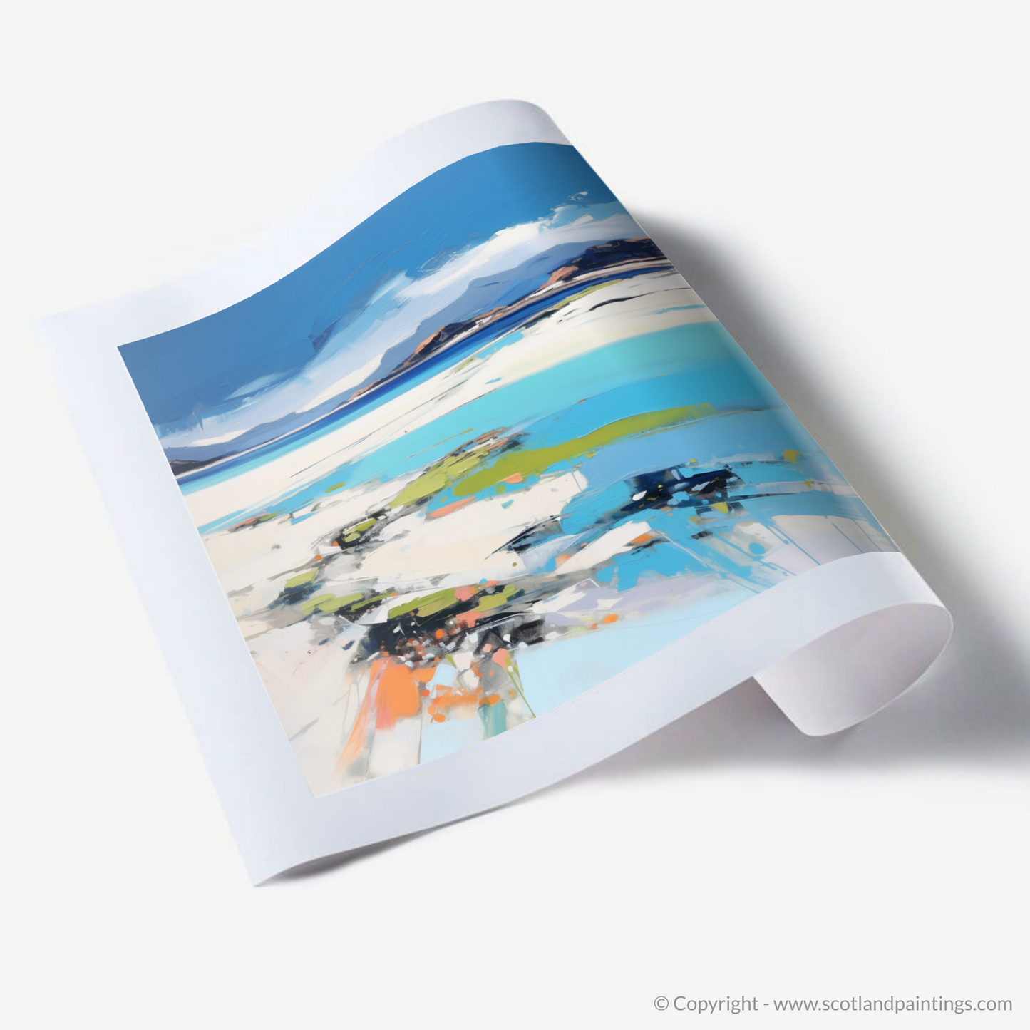 Capture the essence of one of Scotland's most idyllic coastal scenes with this vibrant contemporary print. The piece showcases Camusdarach Beach, Arisaig, through an expressive use of colour and dynamic brushwork that brings the Highland landscape to life with a modern twist.
