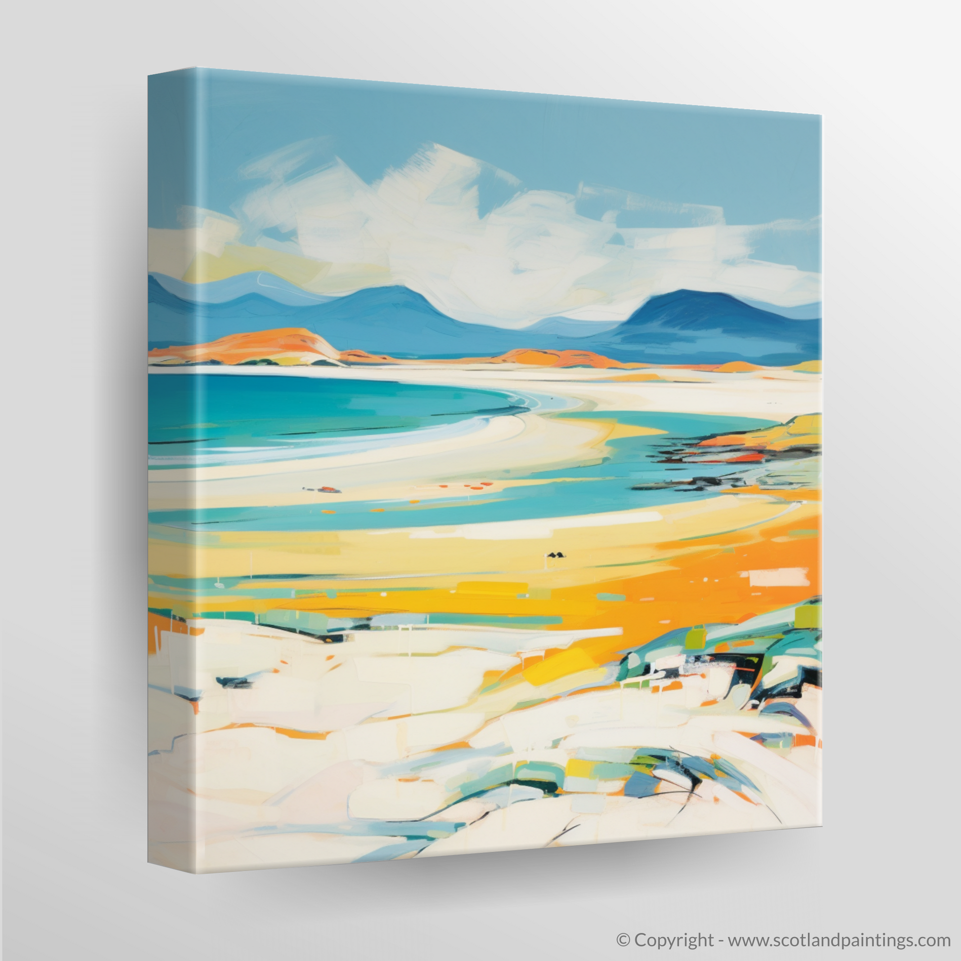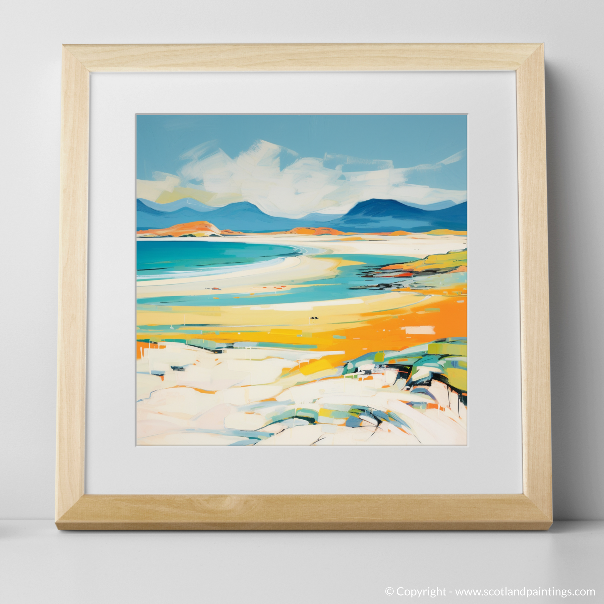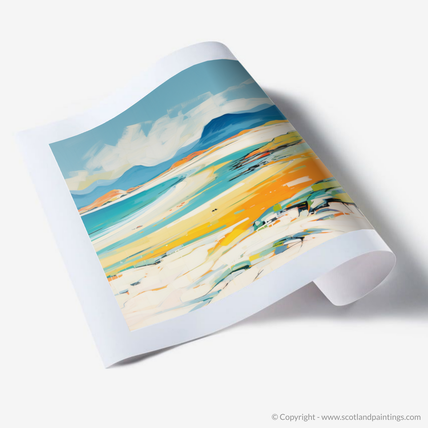 Capturing the essence of Luskentyre Beach on the Isle of Harris, this vibrant abstract print showcases the natural splendour of one of Scotland's most picturesque beaches. The painting evokes the serene beauty of the location through a symphony of colour and form, using bold brushstrokes and a dynamic palette to interpret the landscape.