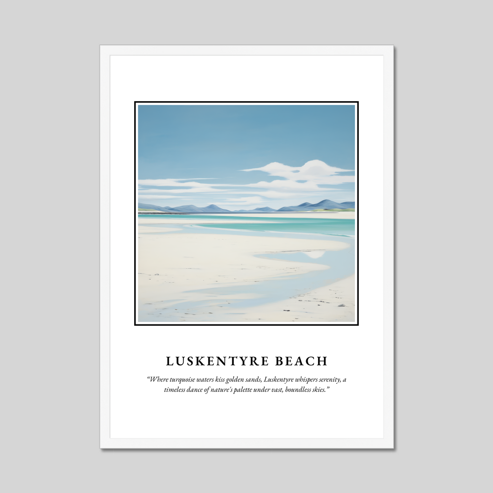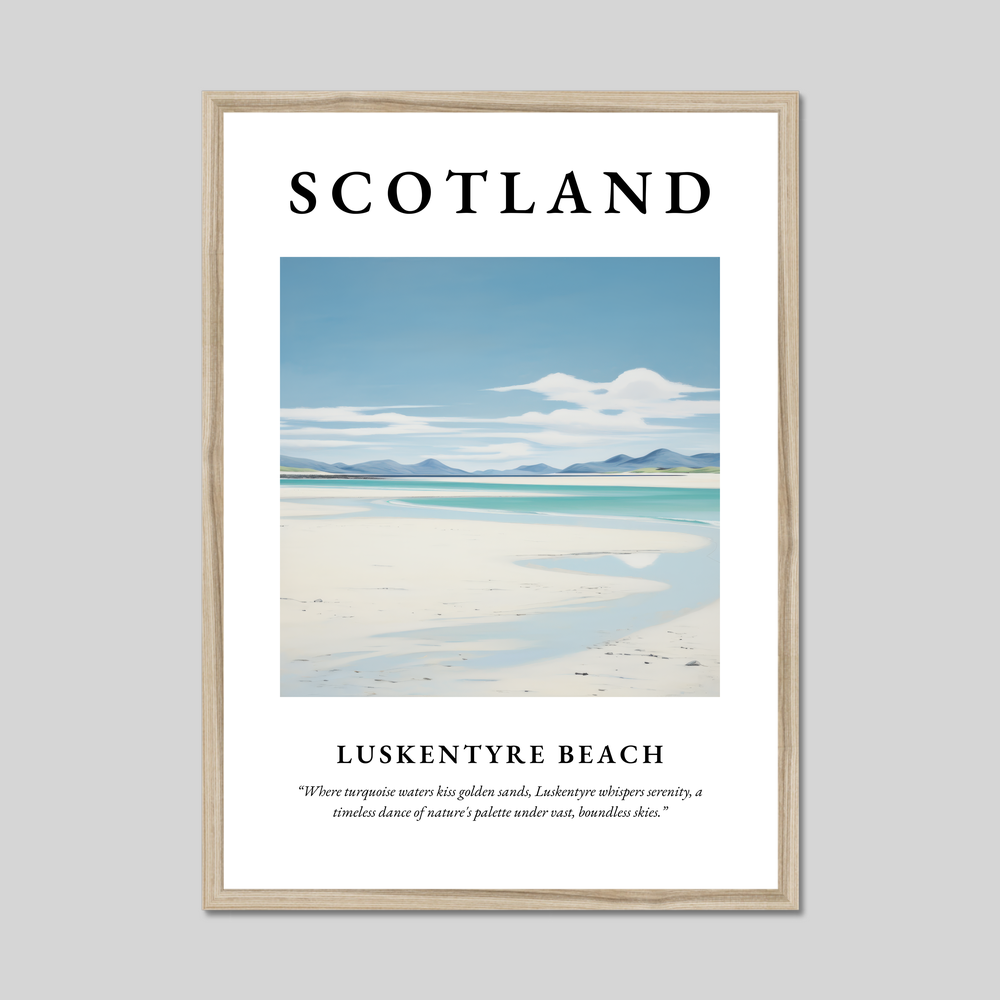 Be it a cherished memory of a past visit or a dream destination yet to be explored, this art print of Luskentyre Beach serves as a daily reminder of nature’s artistry. The quote beneath the image, "Where turquoise waters kiss golden sands, Luskentyre whispers serenity, a timeless dance of nature's palette under vast, boundless skies," perfectly encapsulates the timeless allure of this magical place. Bring home a piece of Scotland's coastal wonder and let your imagination wander.