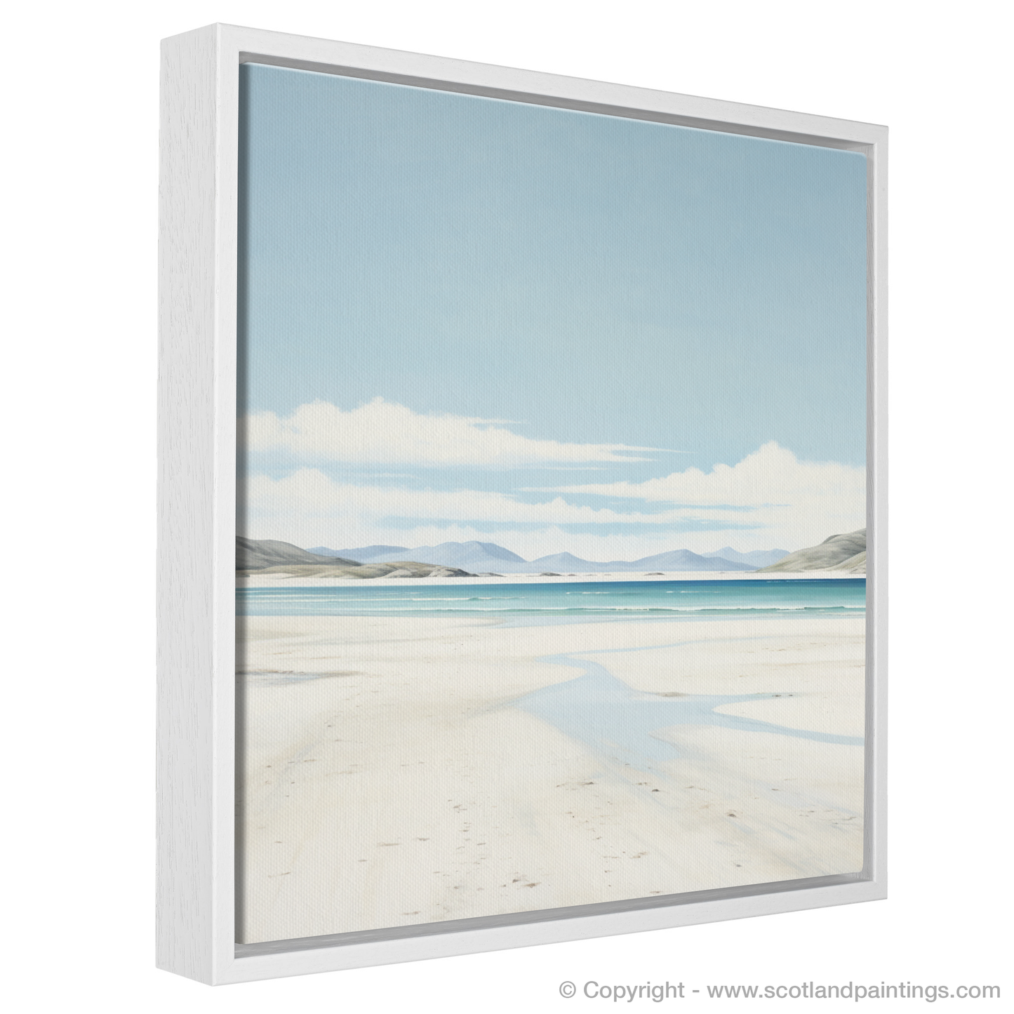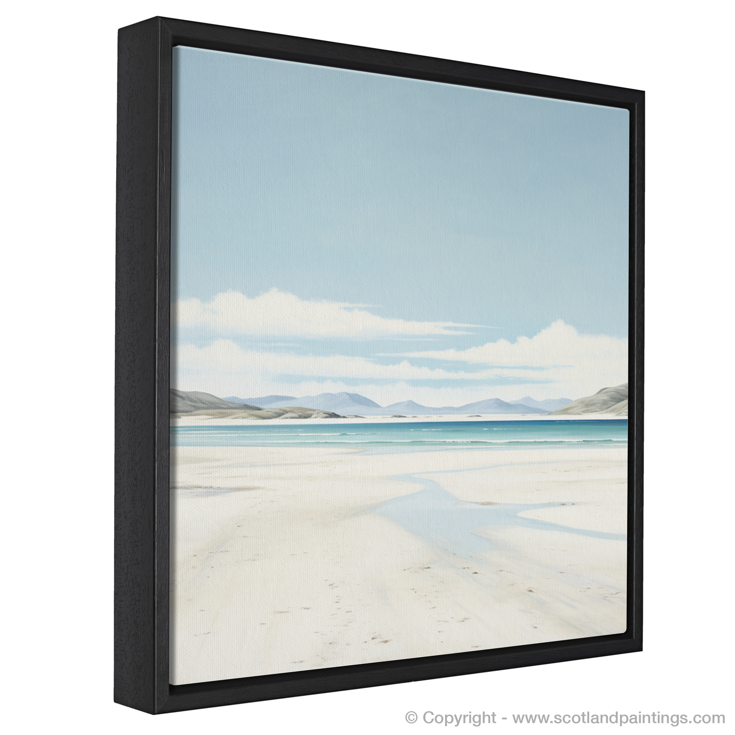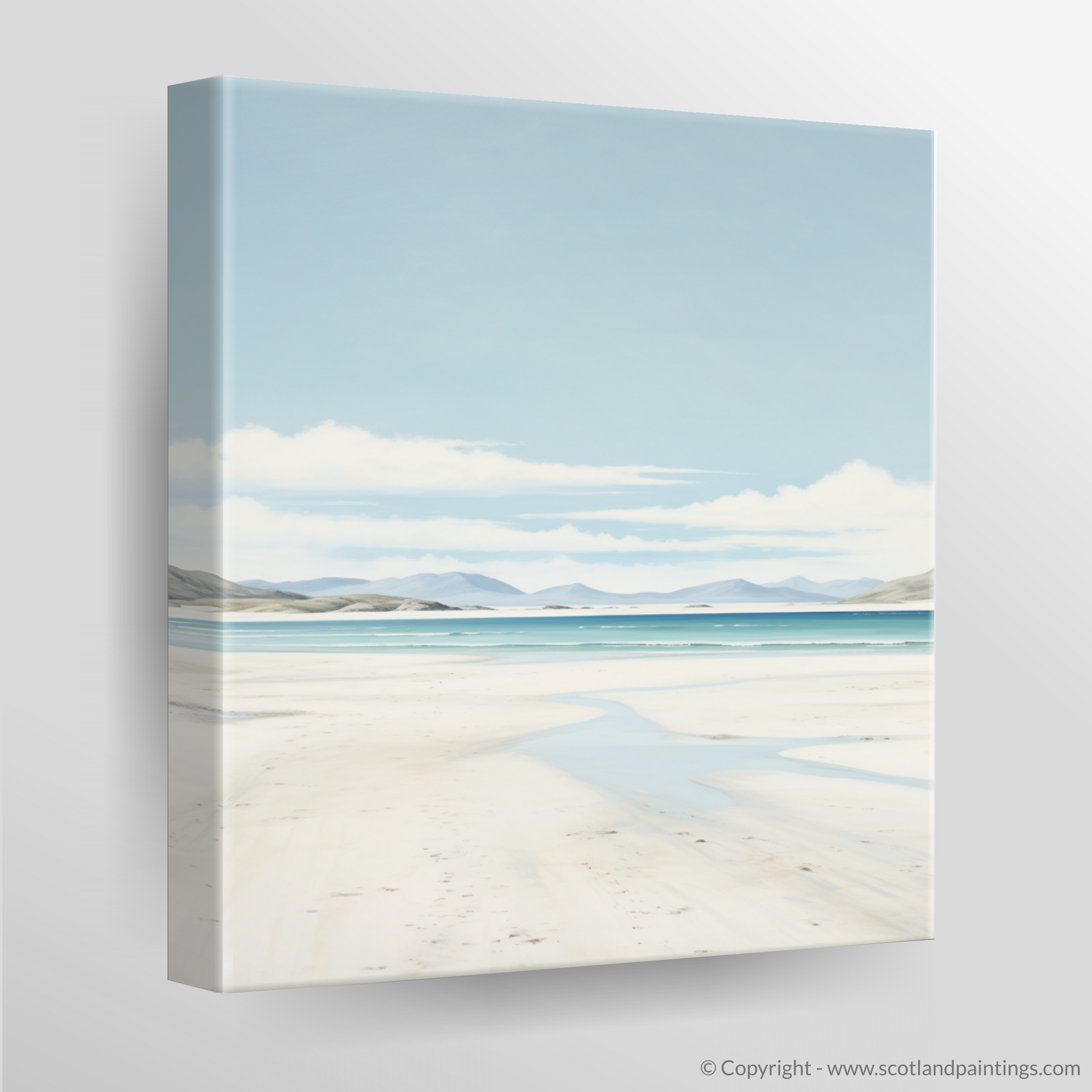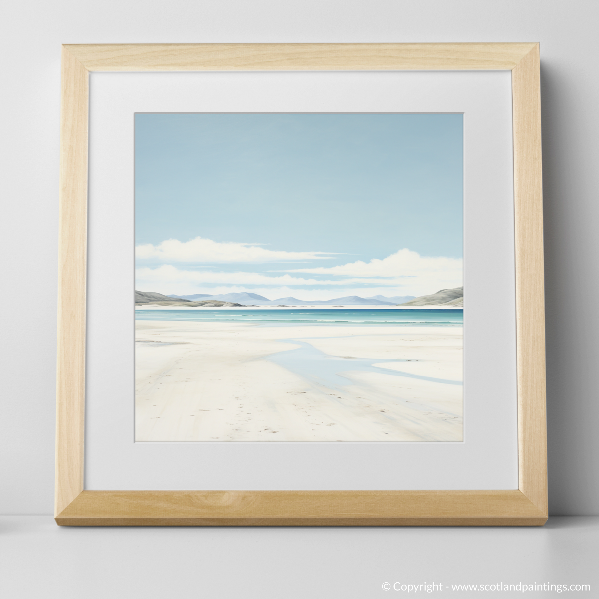 The composition is a masterpiece of understated elegance, using broad, harmonious swathes of colour to create an abstract yet recognisable representation of the beach's wide shores and gentle tides. The distant hills are rendered in gentle gradients, suggesting the subtle undulations of the Isle of Harris’ distinctive landscape, while the sky is a canvas of tranquility with just a wisp of cloud to suggest the quiet movement of the gentle Hebridean breeze.