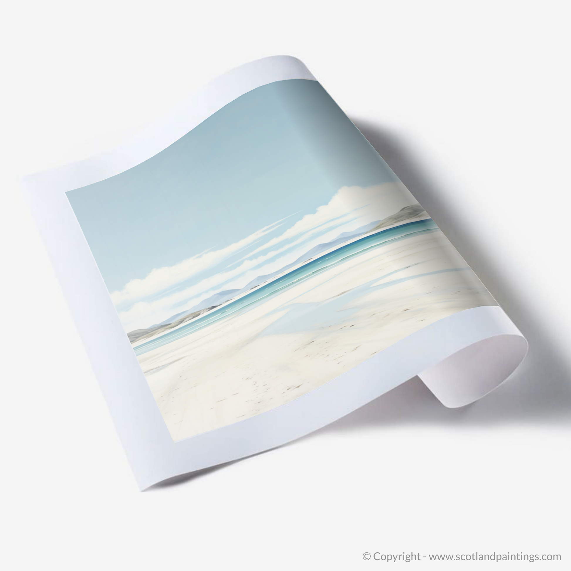 Capture the serene beauty of Luskentyre Beach with this evocative print that brings the tranquil essence of one of Scotland's most stunning coastal treasures right into your home. The artwork's minimalist interpretation uses a soothing palette of pale blues and soft sandy hues to convey the calm, unspoilt expanse of this idyllic location.