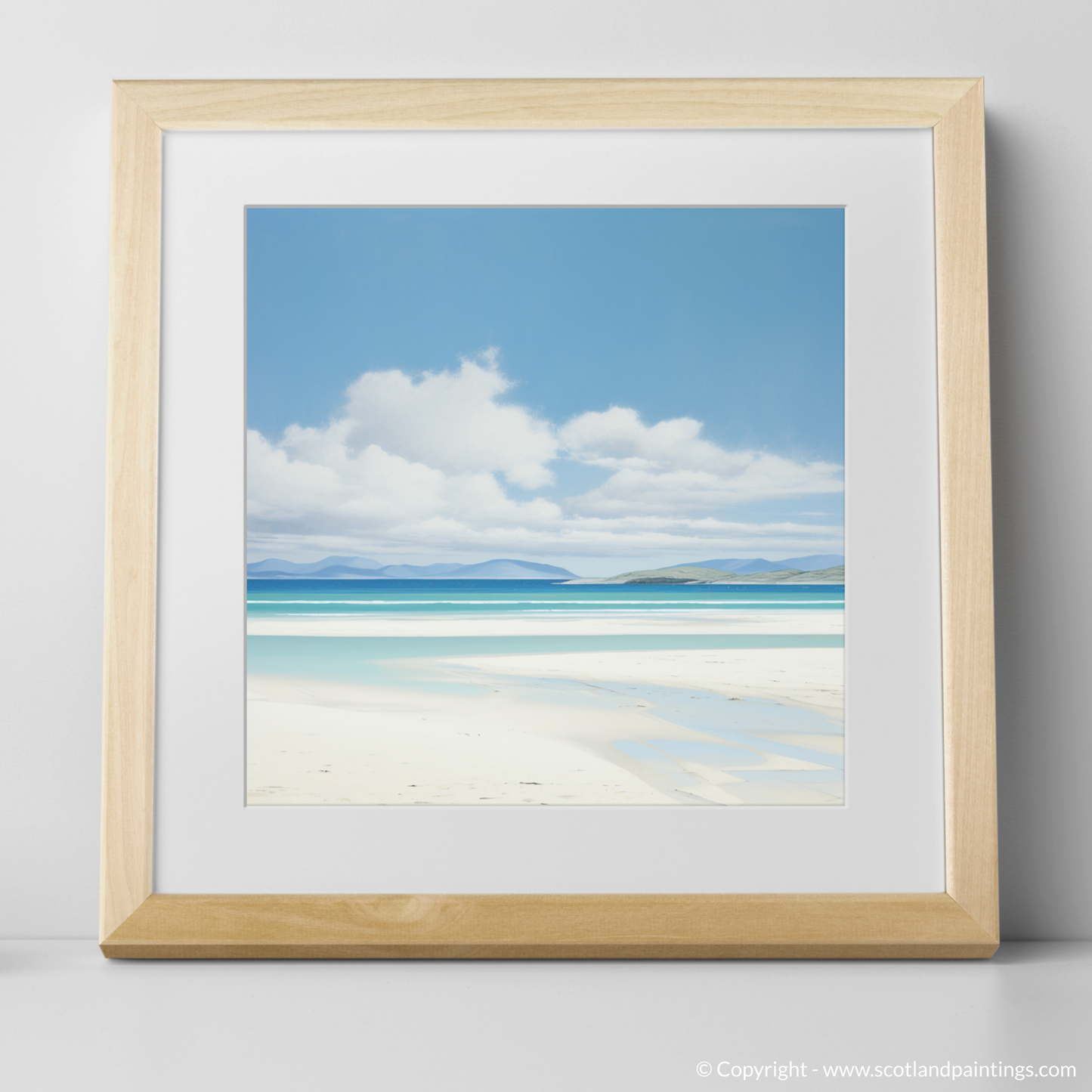 Capturing the serene beauty of the Isle of Harris, this print showcases the tranquil splendour of Luskentyre Beach. Embracing minimalism, the artwork encapsulates the essence of this iconic Scottish beach through a harmonious composition of colour and form.