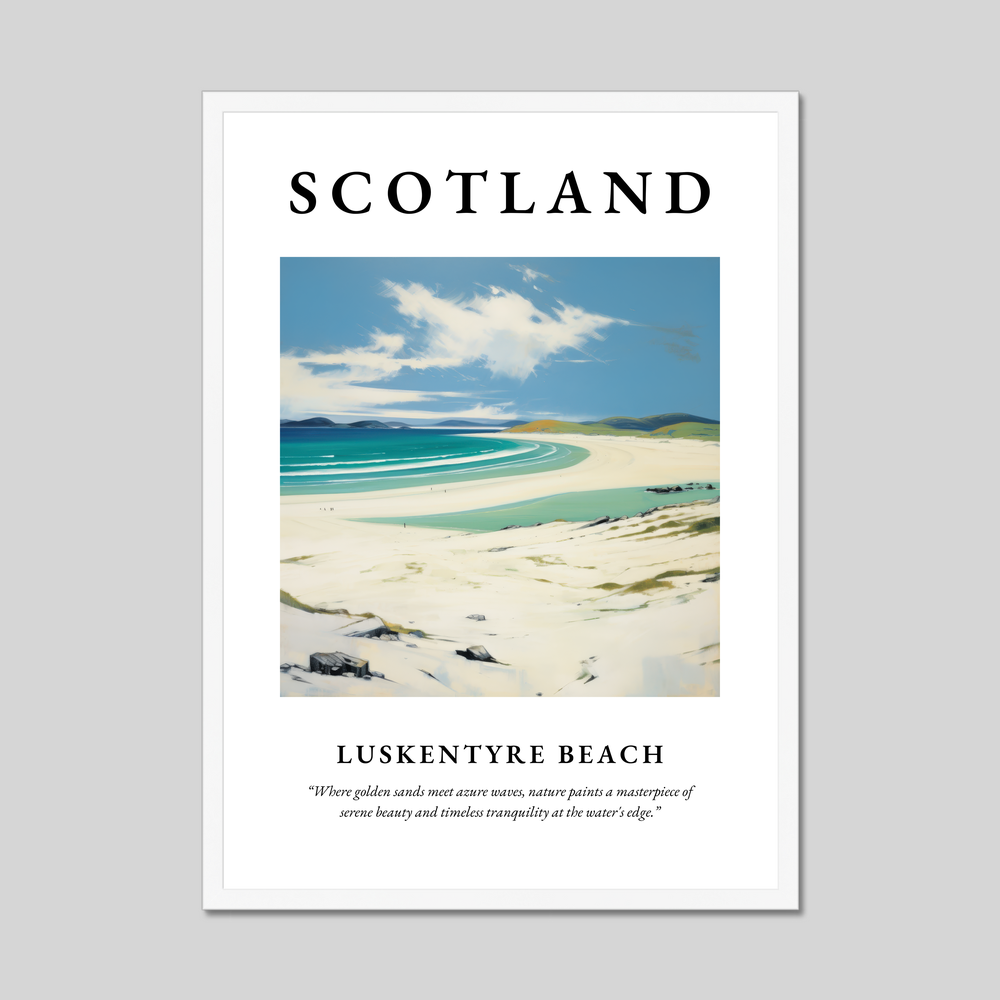 Whether you have wandered along its shores or dream of its idyllic scenery, this piece invites you to experience the magic of Luskentyre Beach each day. Let the poster transport you to those tranquil Scottish shores, keeping the essence of this picturesque paradise alive in your home.