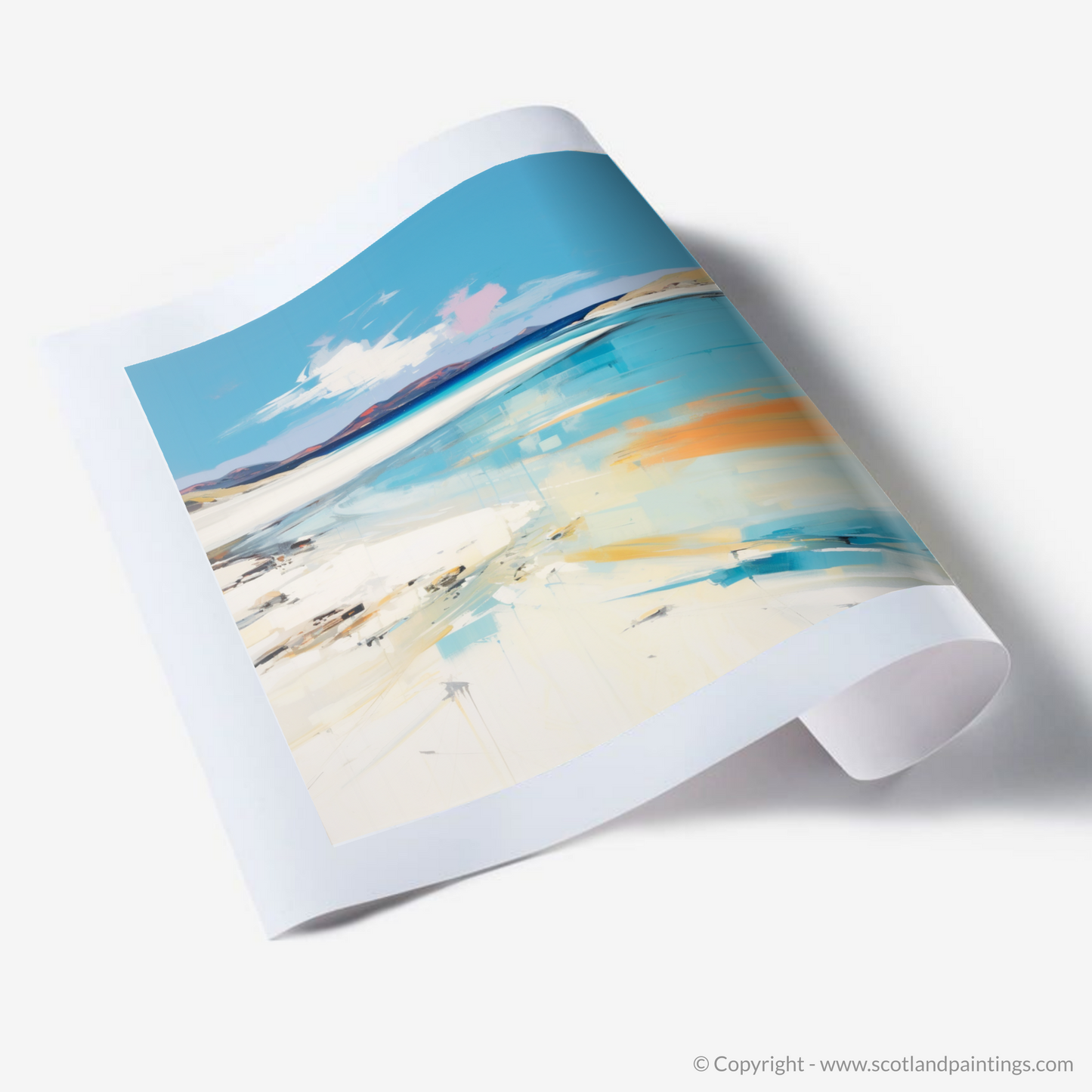 Capturing the serene beauty of Luskentyre Beach on the Isle of Harris, this captivating print embodies the essence of modern Scottish landscapes. The artwork showcases an ethereal interpretation of one of Scotland's most breathtaking beaches, renowned for its expansive coast and crystal-clear waters.