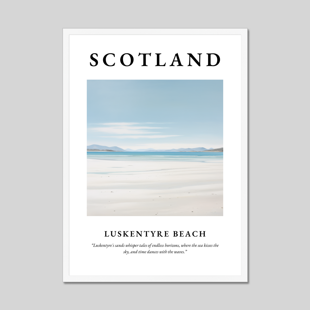 Whether you're yearning for a nostalgic reminder of your visit or simply appreciate the breathtaking landscapes of Scotland, this poster is a cherished piece from our “Scottish Beaches” collection. Let it transport you to Luskentyre’s shores each time you gaze upon it.