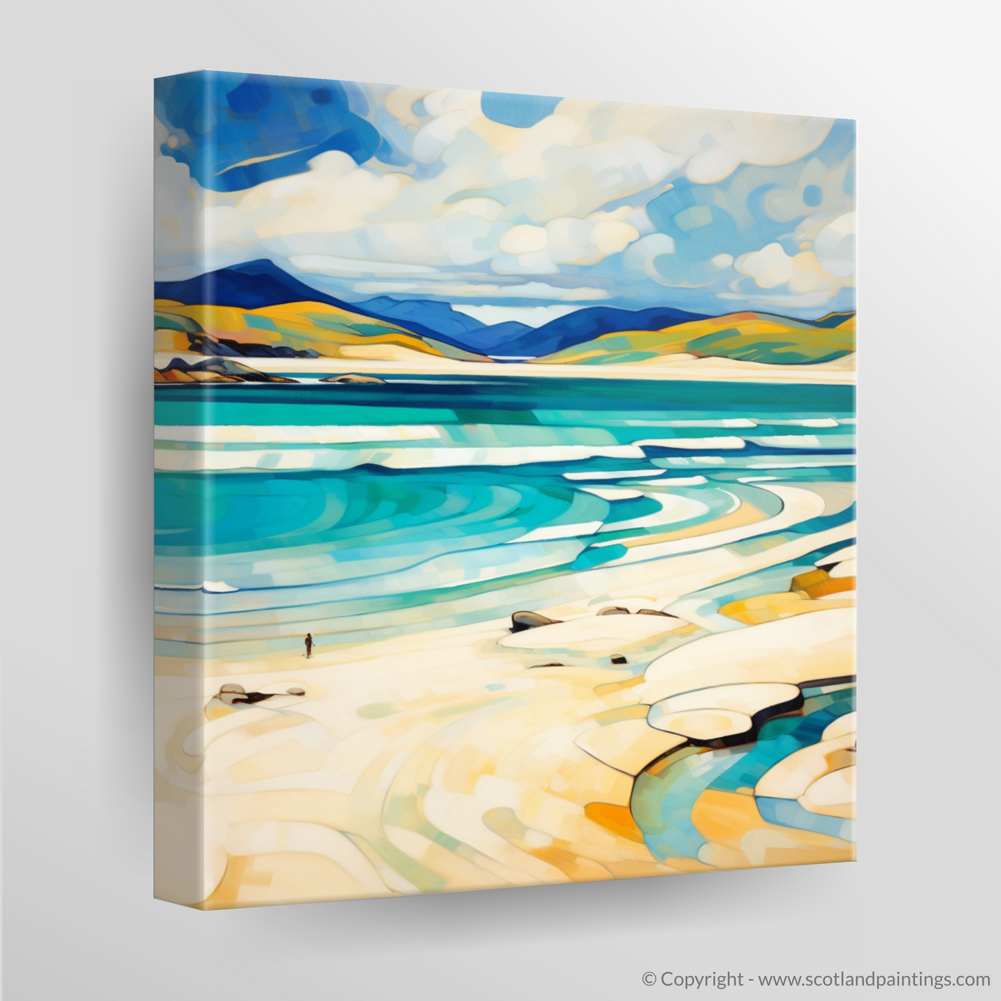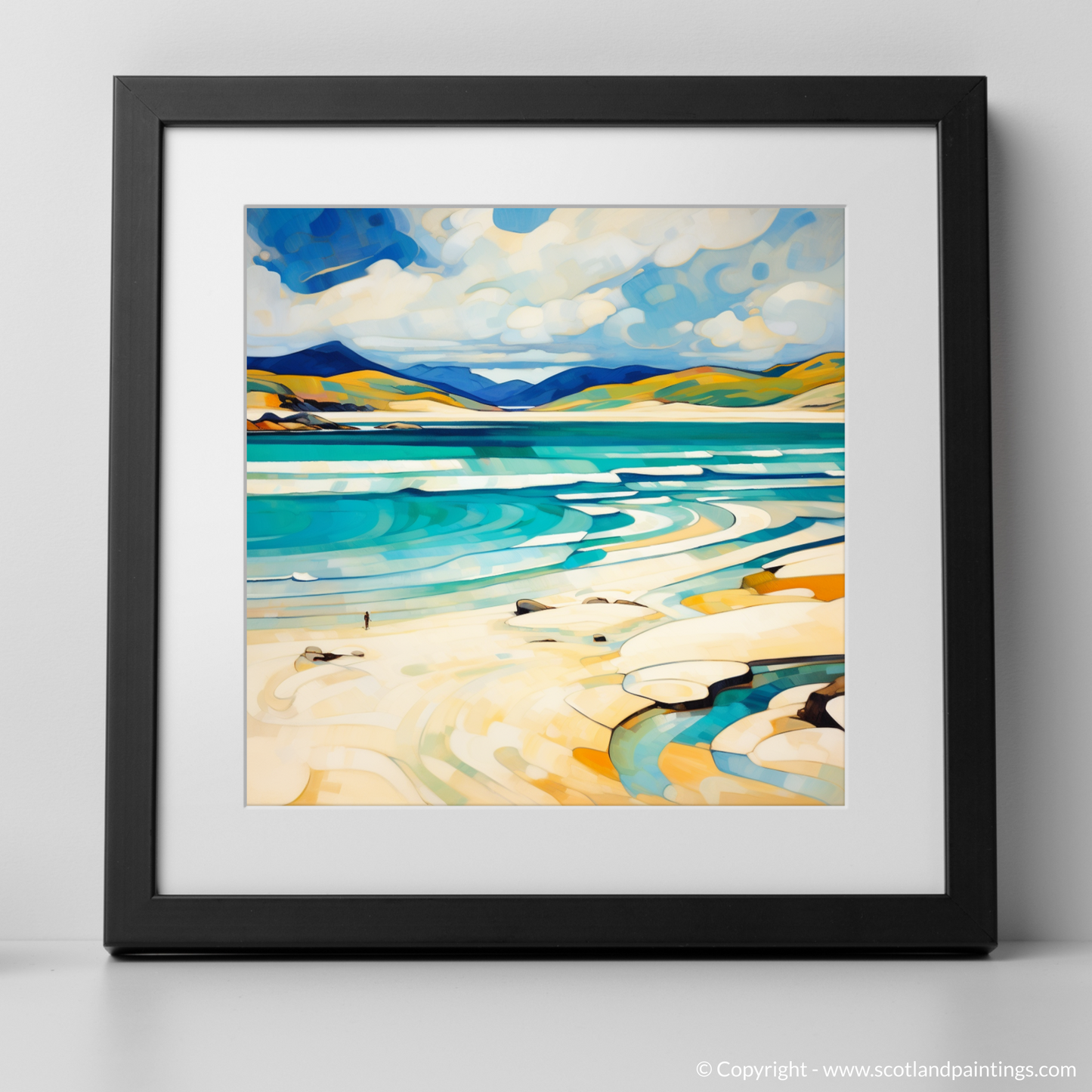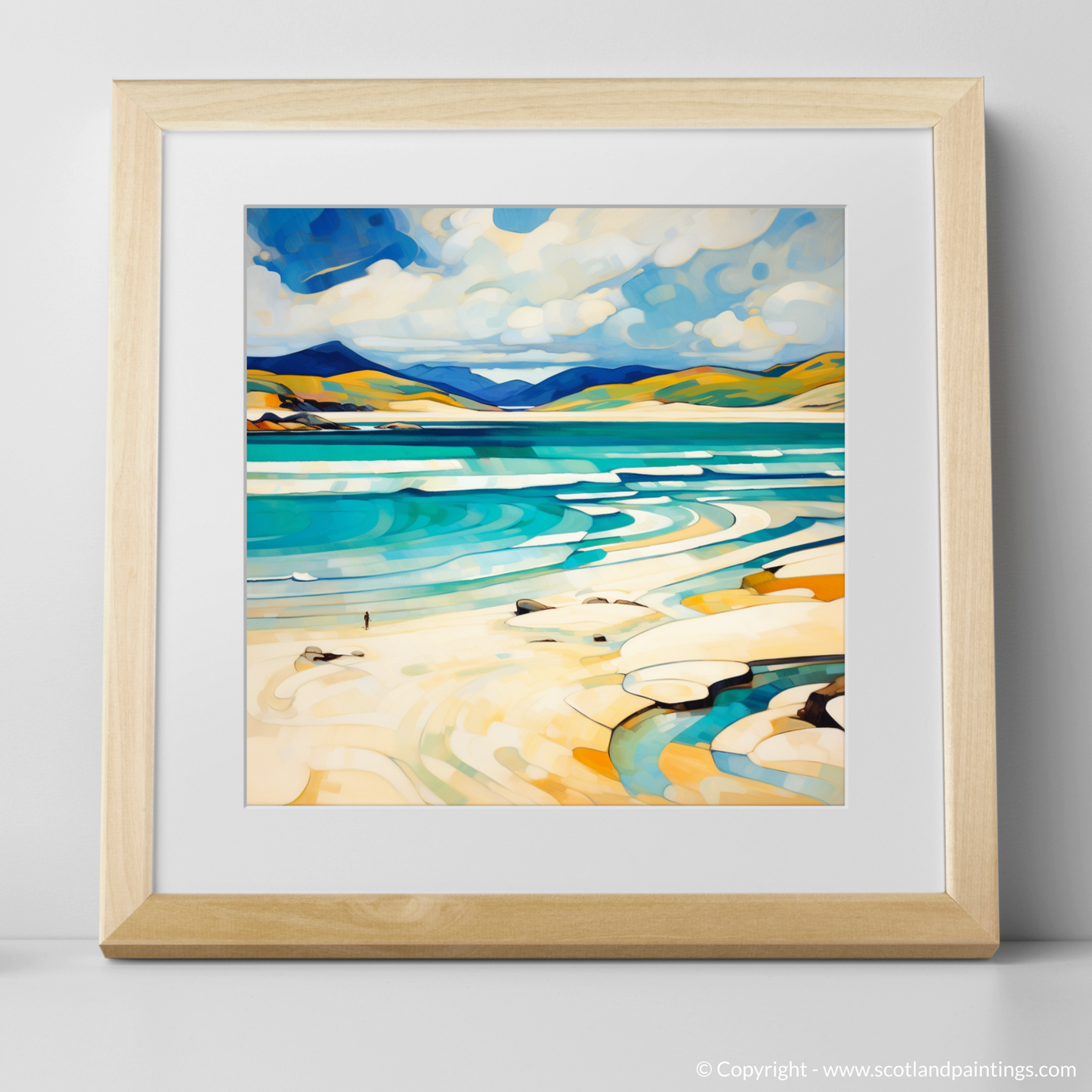 Capturing the essence of the serene and captivating landscapes of Scotland, this abstract print is a magnificent homage to the stunning Luskentyre Beach on the Isle of Harris. The artwork masterfully interprets the natural beauty with a vibrant yet harmonious palette, carrying the viewer away to a place of idyllic tranquility.