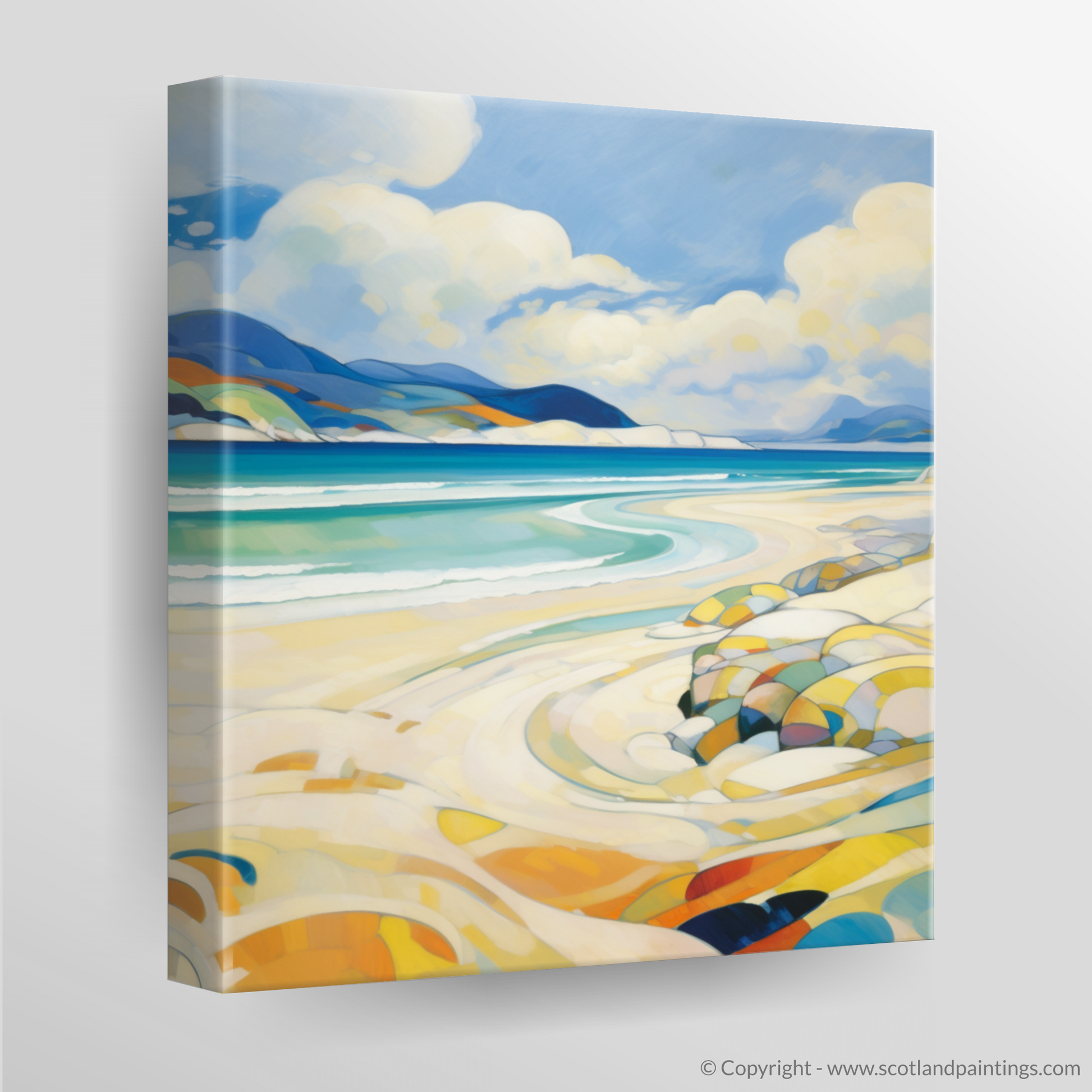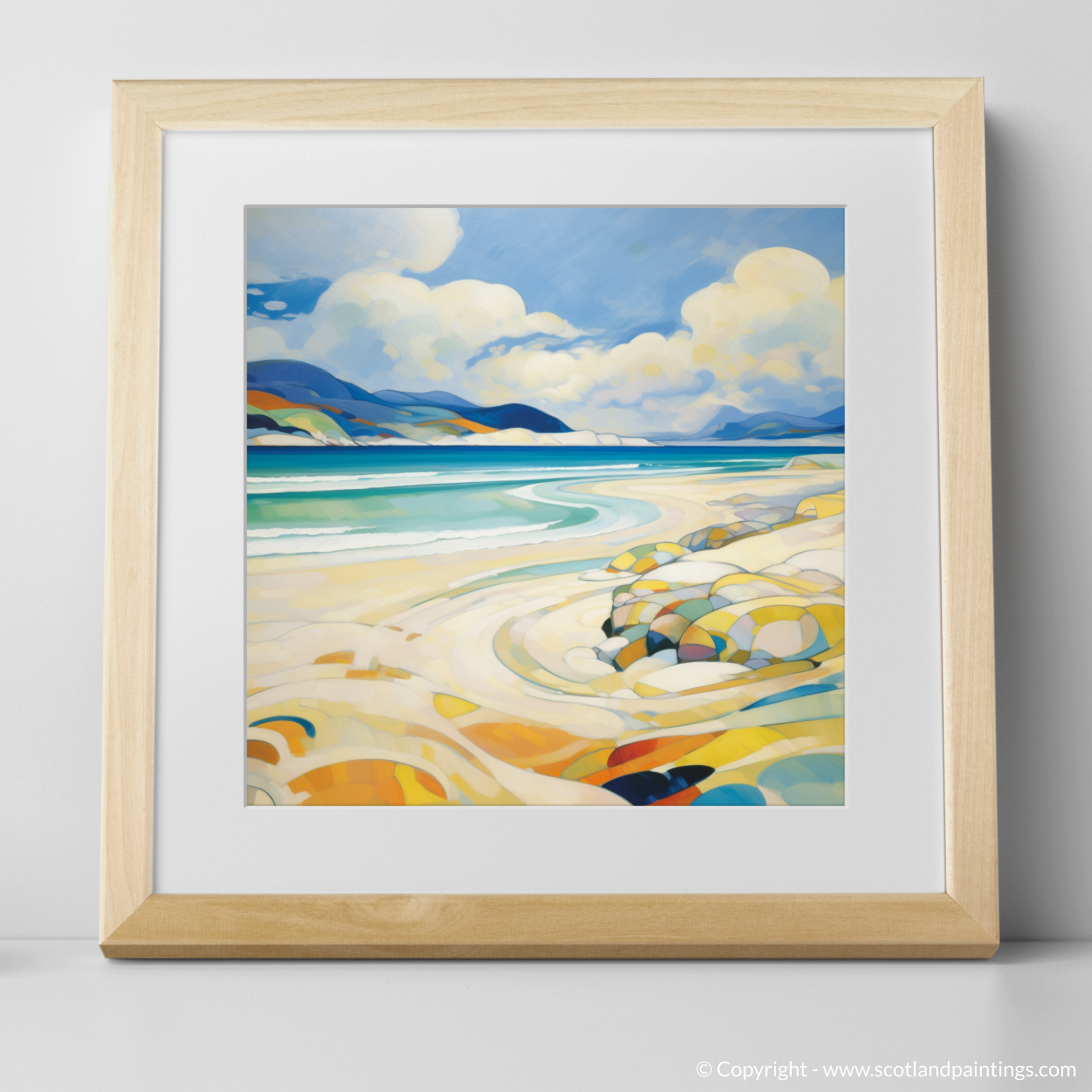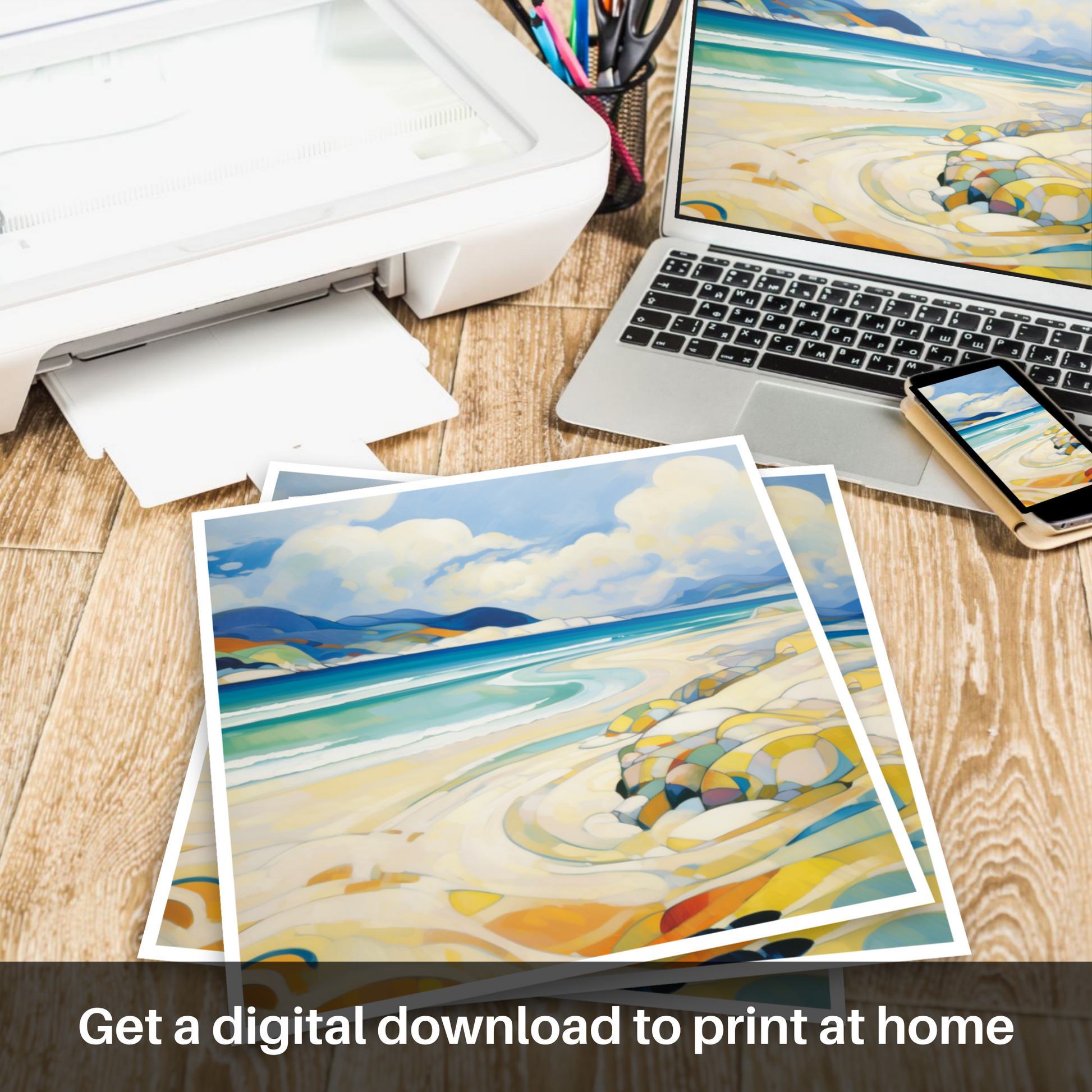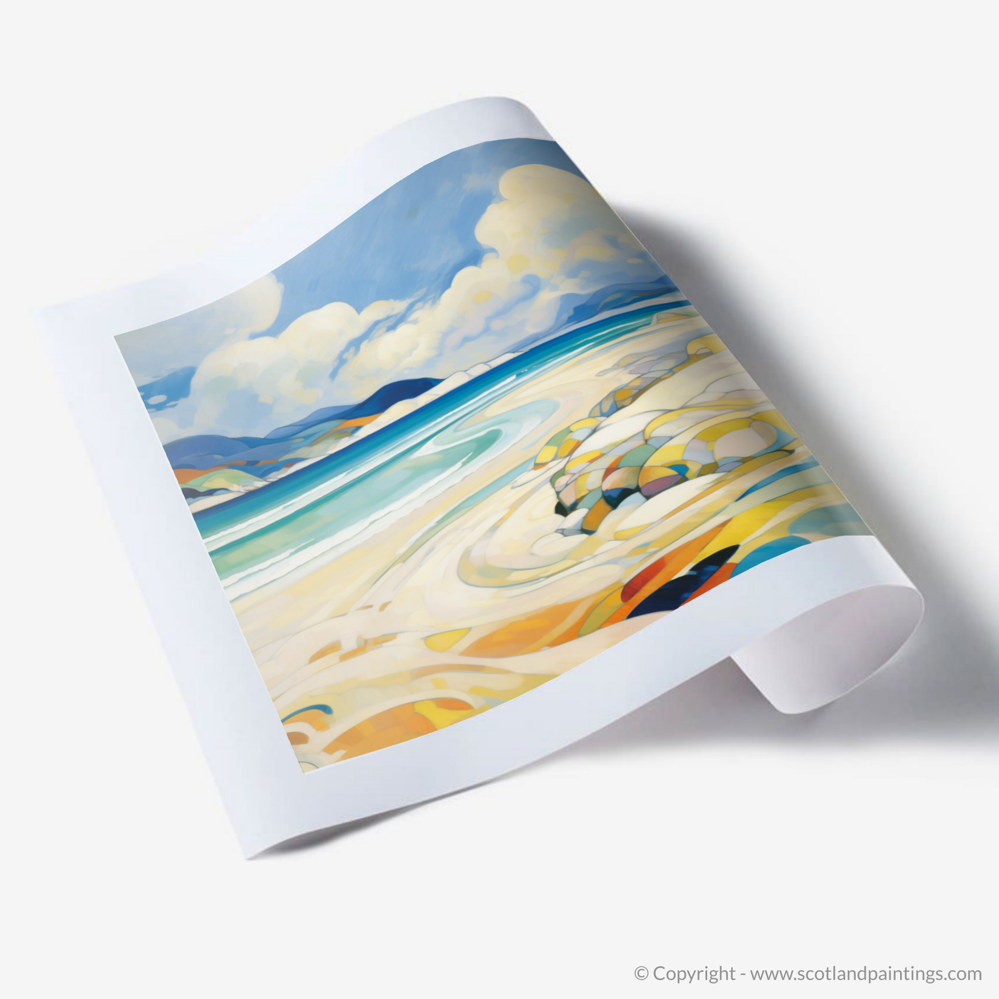 This captivating print presents a stylised rendition of the serene Luskentyre Beach, nestled on the Isle of Harris, and is an enchanting addition to our 'Scottish Beaches' collection. The artist's abstract approach to the coastal landscape captures the innate beauty and vibrant atmosphere of one of Scotland’s most picturesque shores.
