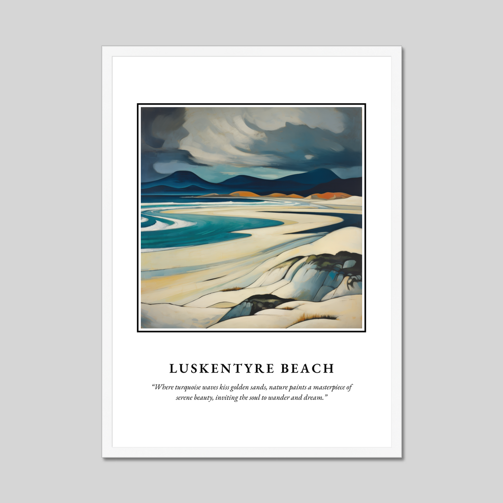 Gaze upon this exquisite piece and let your mind wander to the tranquil shores of Luskentyre, where nature's palette paints the sky and sea in soothing, abstract harmony. Whether you've visited this breath-taking locale or simply dream of witnessing its beauty, this artwork is a timeless tribute to one of Scotland's most captivating beaches, ready to inspire and enchant.