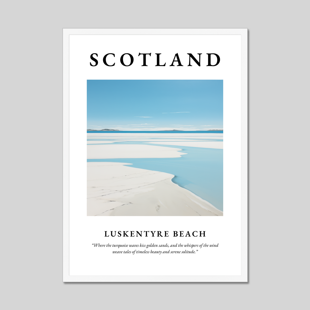 For those who hold Scotland dear, whether through cherished memories or a deep appreciation for its landscapes, this poster offers a daily reminder of the country's breathtaking beauty. Celebrate the timeless elegance and peaceful solitude of Luskentyre Beach with a framed print that speaks to the heart and soul.