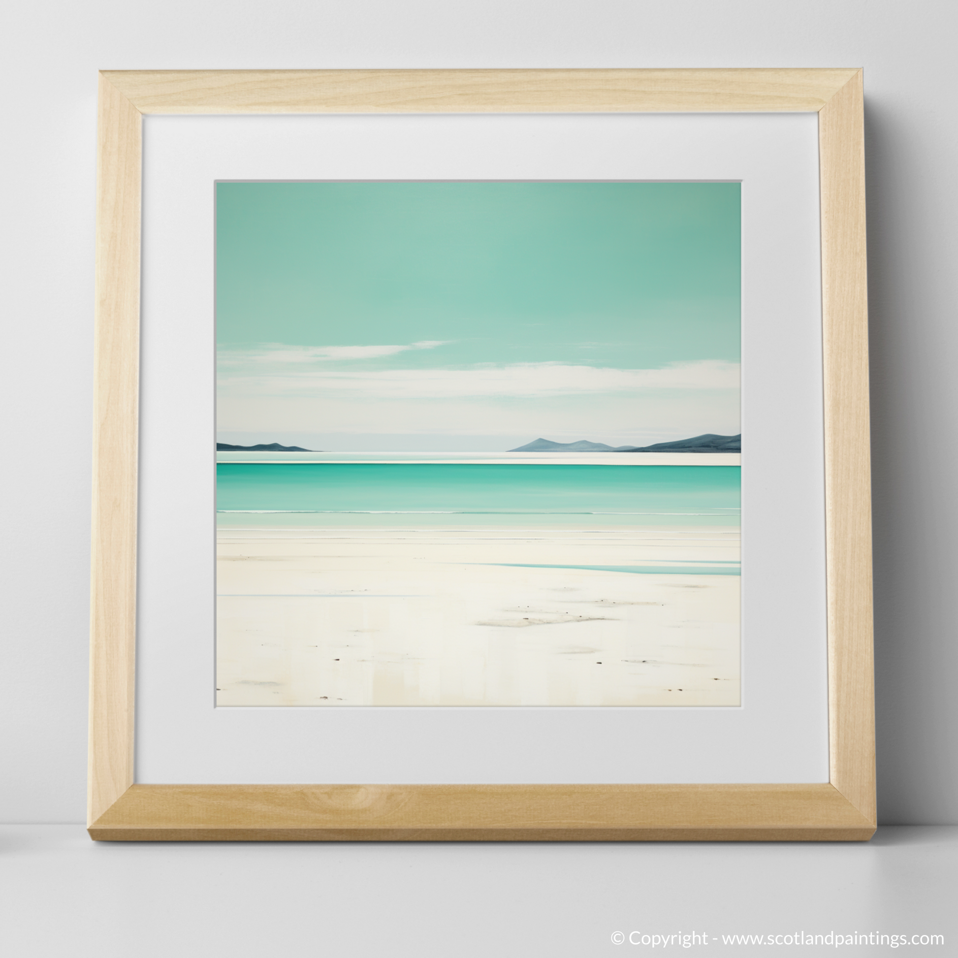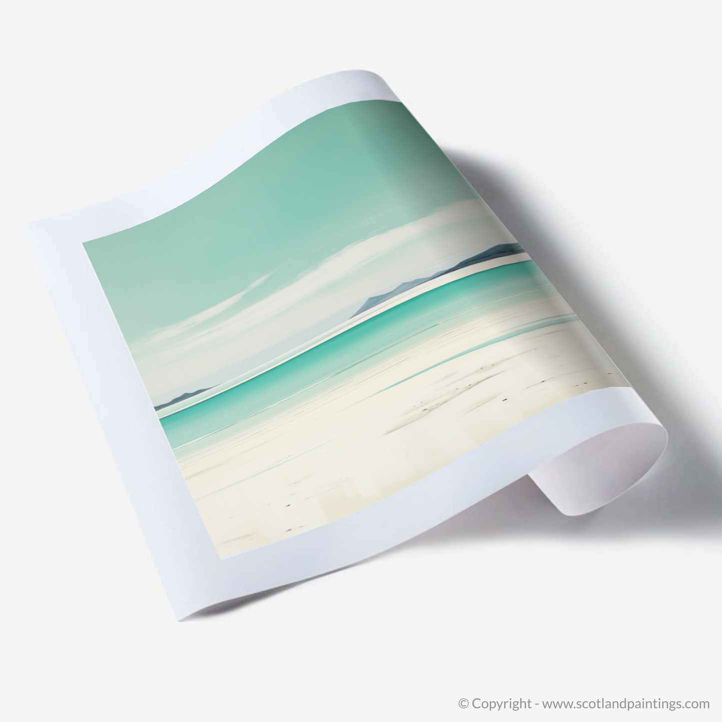 Capture the serene beauty of the Outer Hebrides with our exquisite minimalist print inspired by the stunning Luskentyre Beach on the Isle of Harris. This piece artfully evokes the tranquil atmosphere of one of Scotland's most breathtaking coastlines through a masterful interplay of colour and form.
