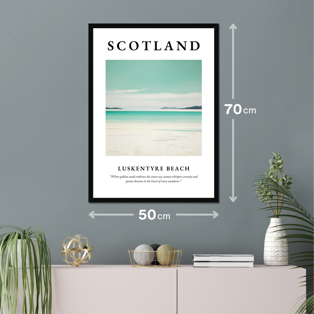Luskentyre Beach, located on the Isle of Harris in Scotland, is a place where nature’s palette is at its most vibrant. Known for its shimmering sands and turquoise waters, this beach offers breathtaking vistas that rejuvenate the soul. Whether you have fond memories of visiting it, dream of witnessing its beauty, or simply appreciate its picturesque splendour, this poster will transport you there in spirit. The minimalist artwork captures the vast openness and serene ambience of Luskentyre, allowing you to experience its calming presence from the comfort of your home.