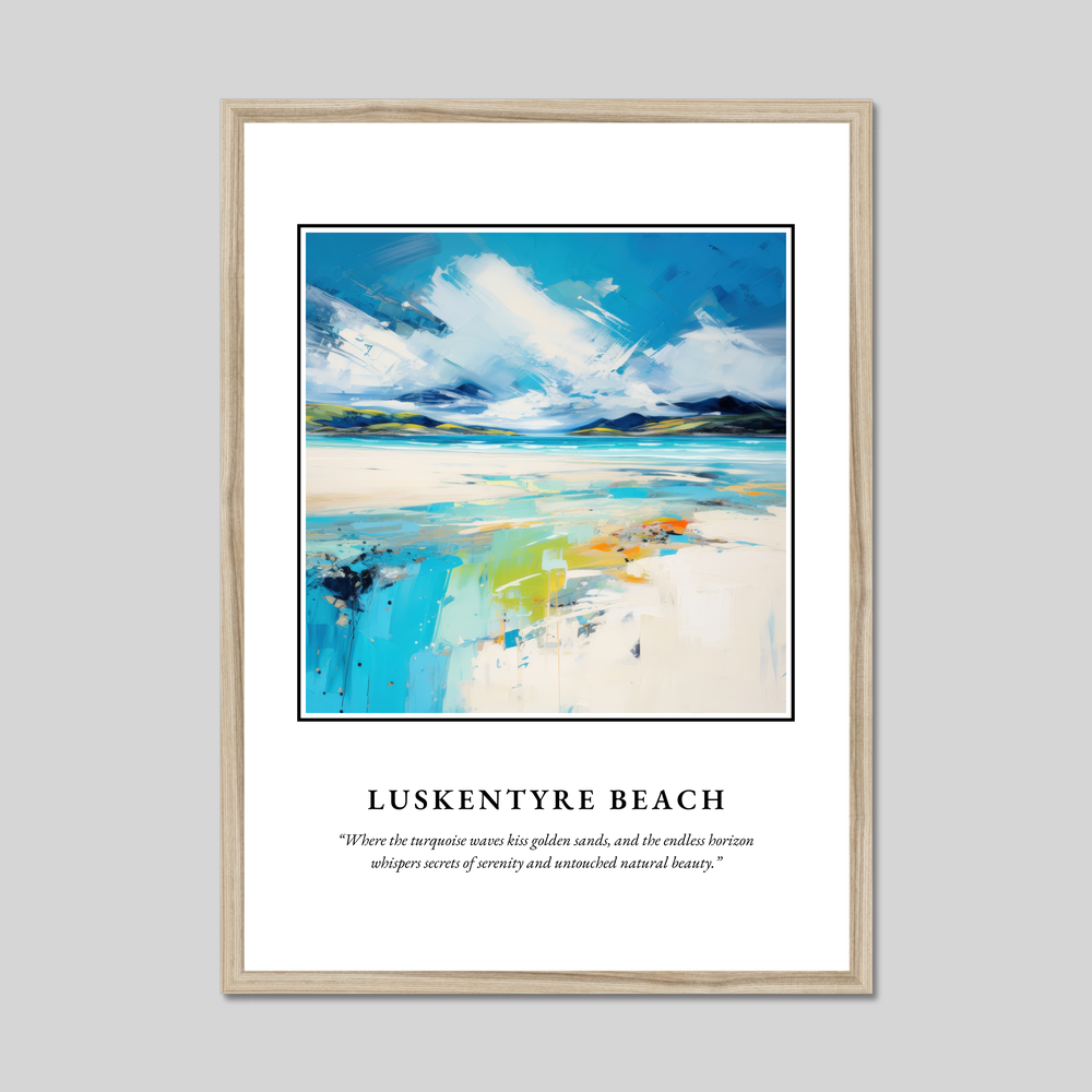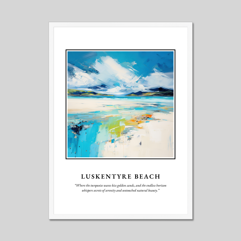 Whether you've wandered the sands of Luskentyre yourself, or simply dreamt of this exotic Scottish paradise, this framed poster brings a touch of its magic into your everyday life. Display it proudly, and let the whispers of the sea and sky inspire a sense of calm and beauty that echoes through your space.