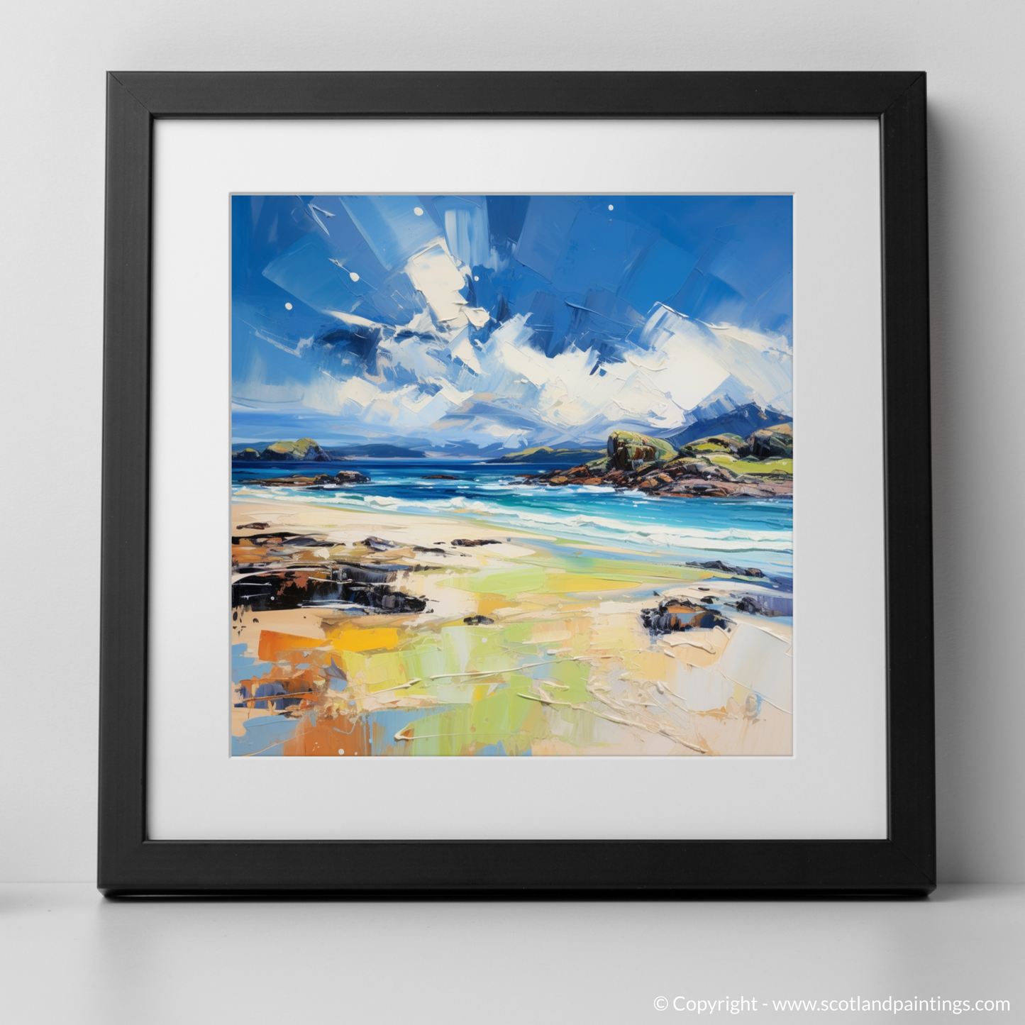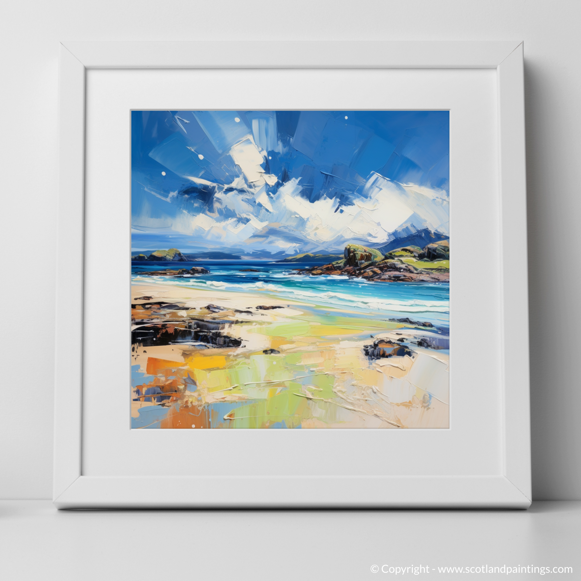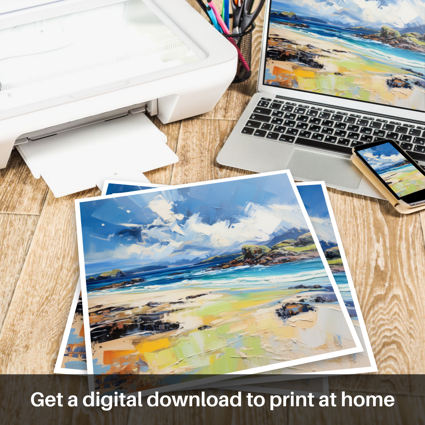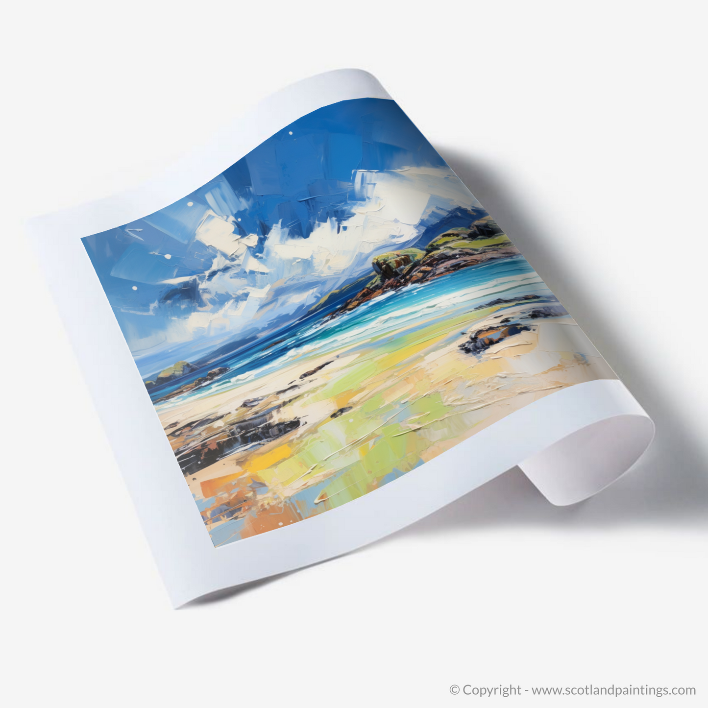 This expressionist interpretation of Camusdarach Beach is more than a mere representation; it is an emotional journey through colour and texture that pays homage to the wild Scottish vistas. This print belongs to a collection that celebrates the elemental grandeur of Scottish beaches, and it will undoubtedly bring a sense of the Highlands' dramatic landscapes into any space it adorns.