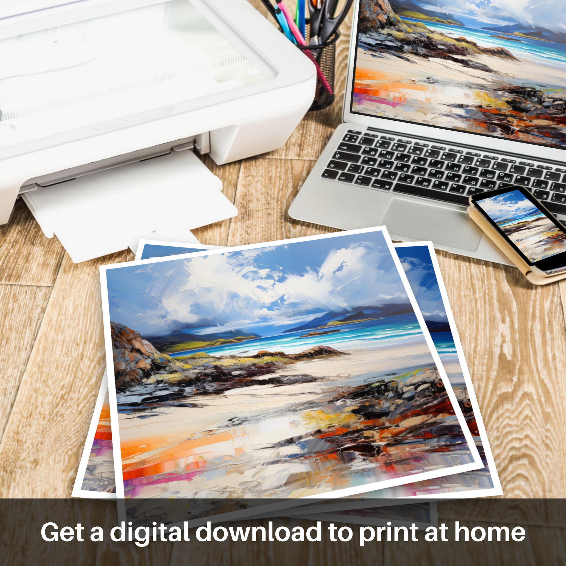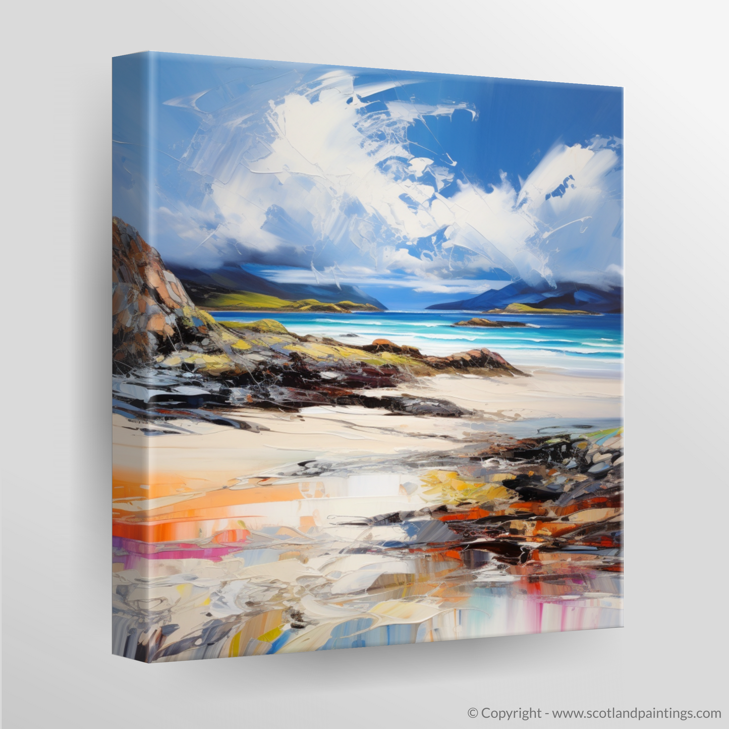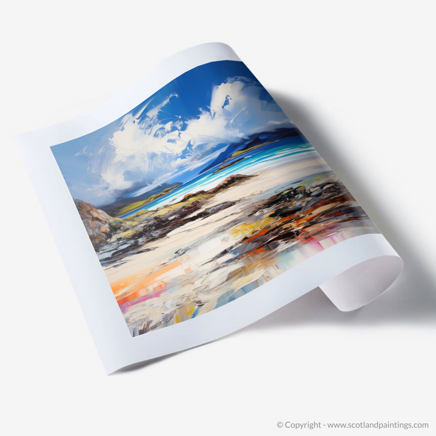Painting and Art Print of Camusdarach Beach, Arisaig entitled "Expression of Camusdarach Beach: A Scottish Seaside Symphony".