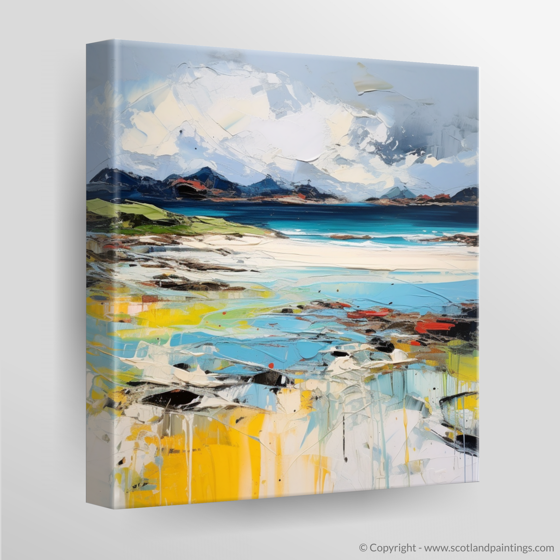 Capturing the raw beauty of Camusdarach Beach in Arisaig, this expressionist-inspired piece evokes the wild and untamed spirit of the Scottish coastline. The artwork invites viewers into a vividly reimagined landscape, where dynamic brush strokes and a bold palette bring to life the rugged charm of this beloved beach.