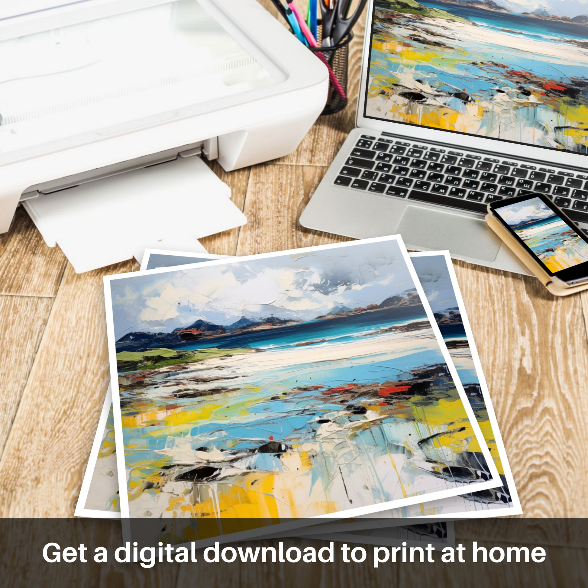 This piece is a stirring addition to our 'Scottish Beaches' collection, offering a window to the soul of Scotland's shores. It is sure to resonate with those drawn to the majesty of nature and the emotive power of expressionist art. Whether adorning a home or an office, this print promises to be a conversation starter and a source of enduring fascination.