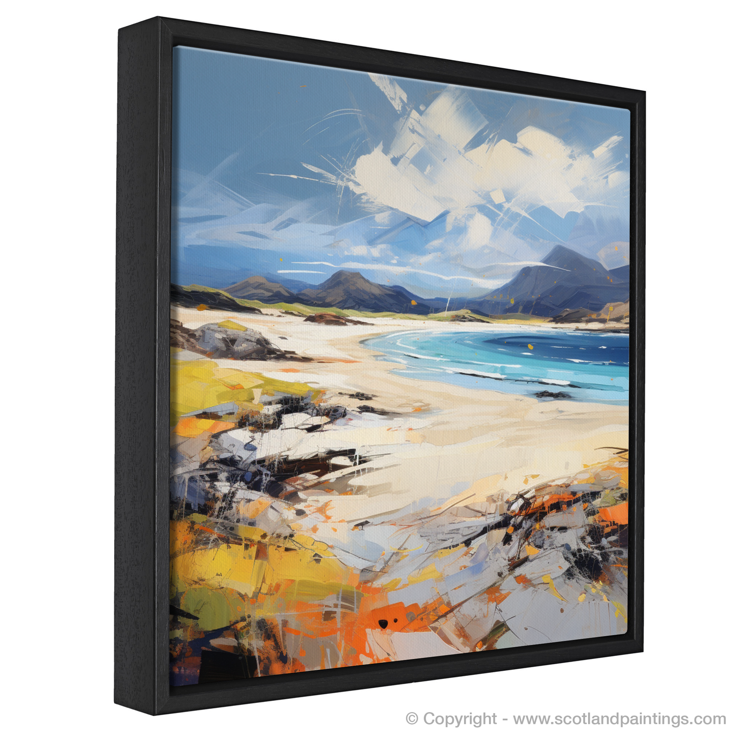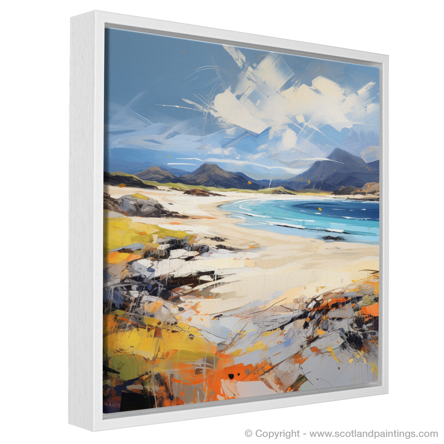 This print offers not only a view but an experience, encapsulating the essence of freedom, the dance between land and sea, and the wild heart of the Scottish beaches. It is a must-have for those who seek to bring the soul of the Highlands into their living space, relishing in the artistry that bridges the gap between nature's splendour and the passion of expressionism.