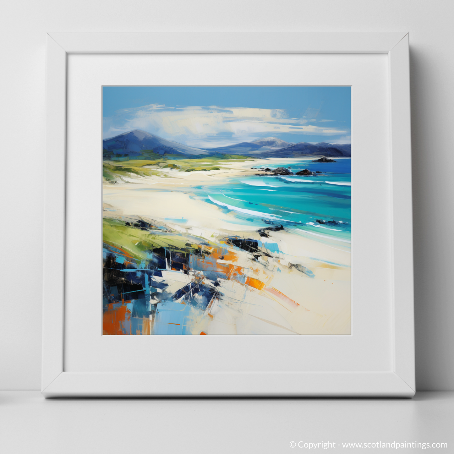 Painting and Art Print of Luskentyre Beach, Isle of Harris entitled "Captivating Luskentyre: An Expressionist Tribute to Scottish Shores".