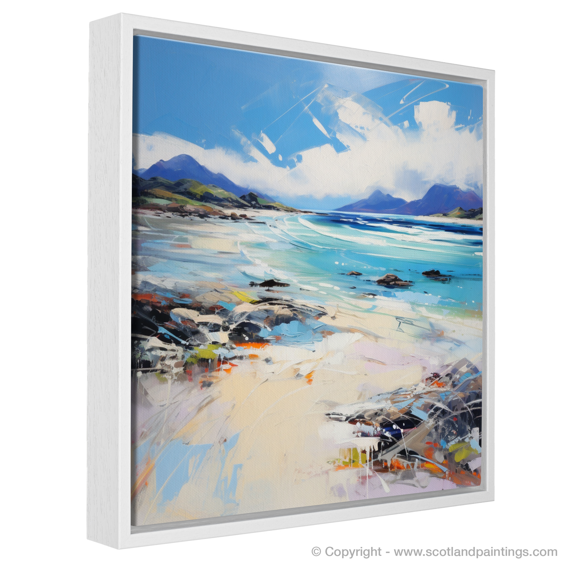 Painting and Art Print of Camusdarach Beach, Arisaig entitled "Dancing Skies and Rugged Shores: The Essence of Camusdarach Beach".