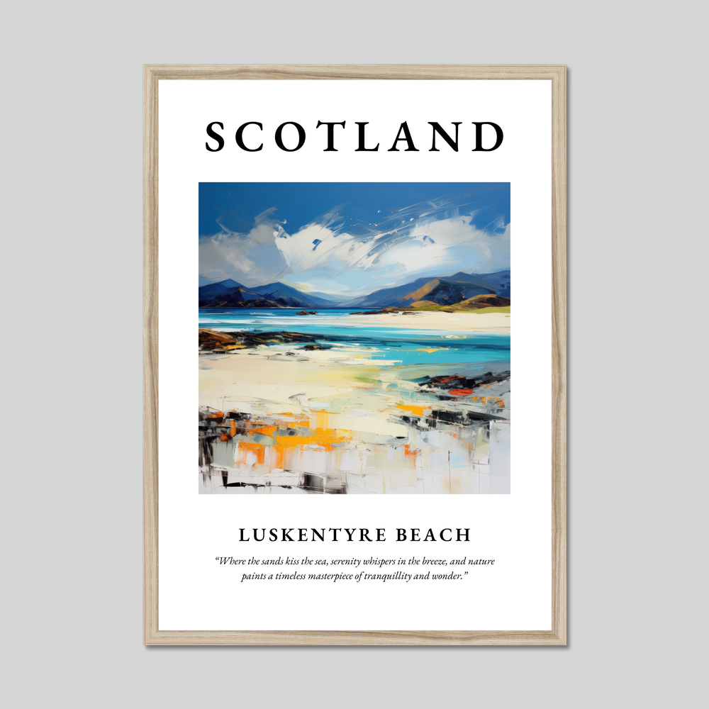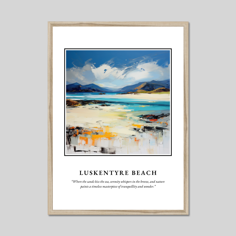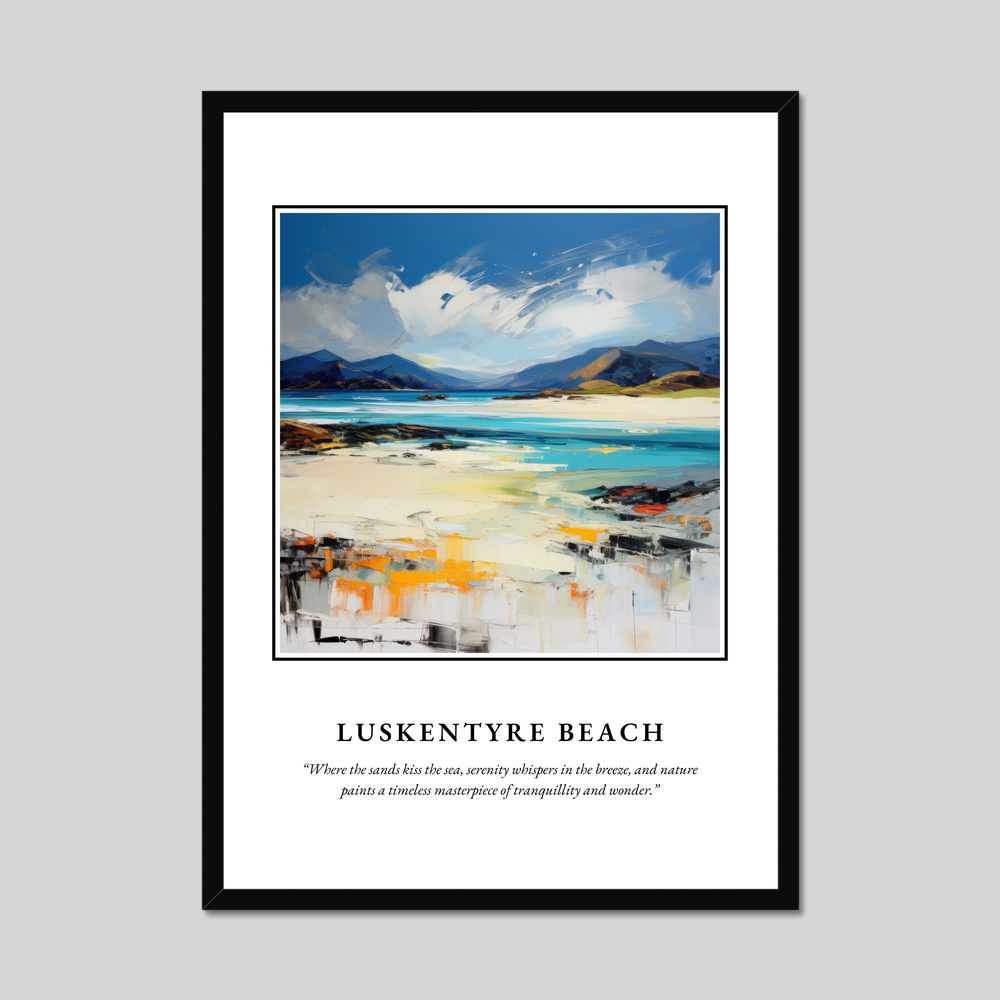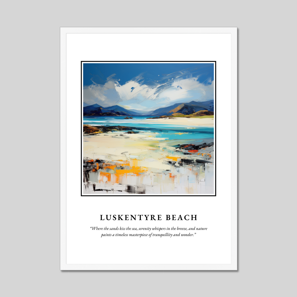 Beneath the painting, the poetic quote “Where the sands kiss the sea, serenity whispers in the breeze, and nature paints a timeless masterpiece of tranquillity and wonder,” captures the serene and timeless allure of Luskentyre Beach, making it an ideal tribute for those who hold a special place in their heart for Scotland.