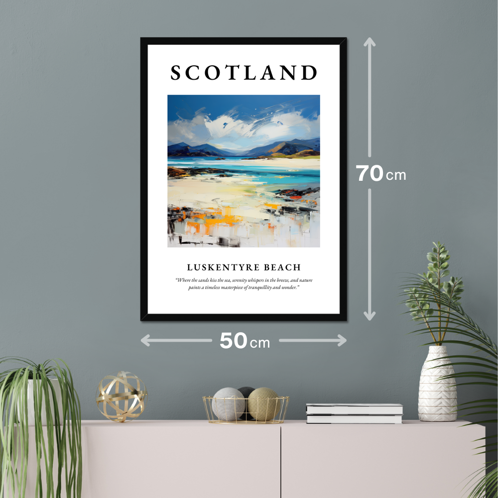 Celebrate the enchanting beauty of Scotland with our stunning framed poster print featuring the breathtaking landscape of Luskentyre Beach. At 50cm x 70cm, this large poster is perfect for those who wish to bring the charm of Scotland’s natural wonders into their home without breaking the bank. Available in your choice of a sleek black, classic white, or elegant natural wood-effect frame, this piece is a versatile addition to any decor style.
