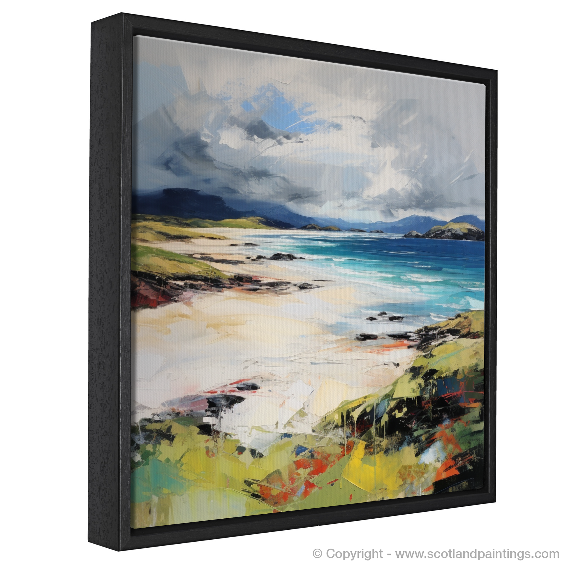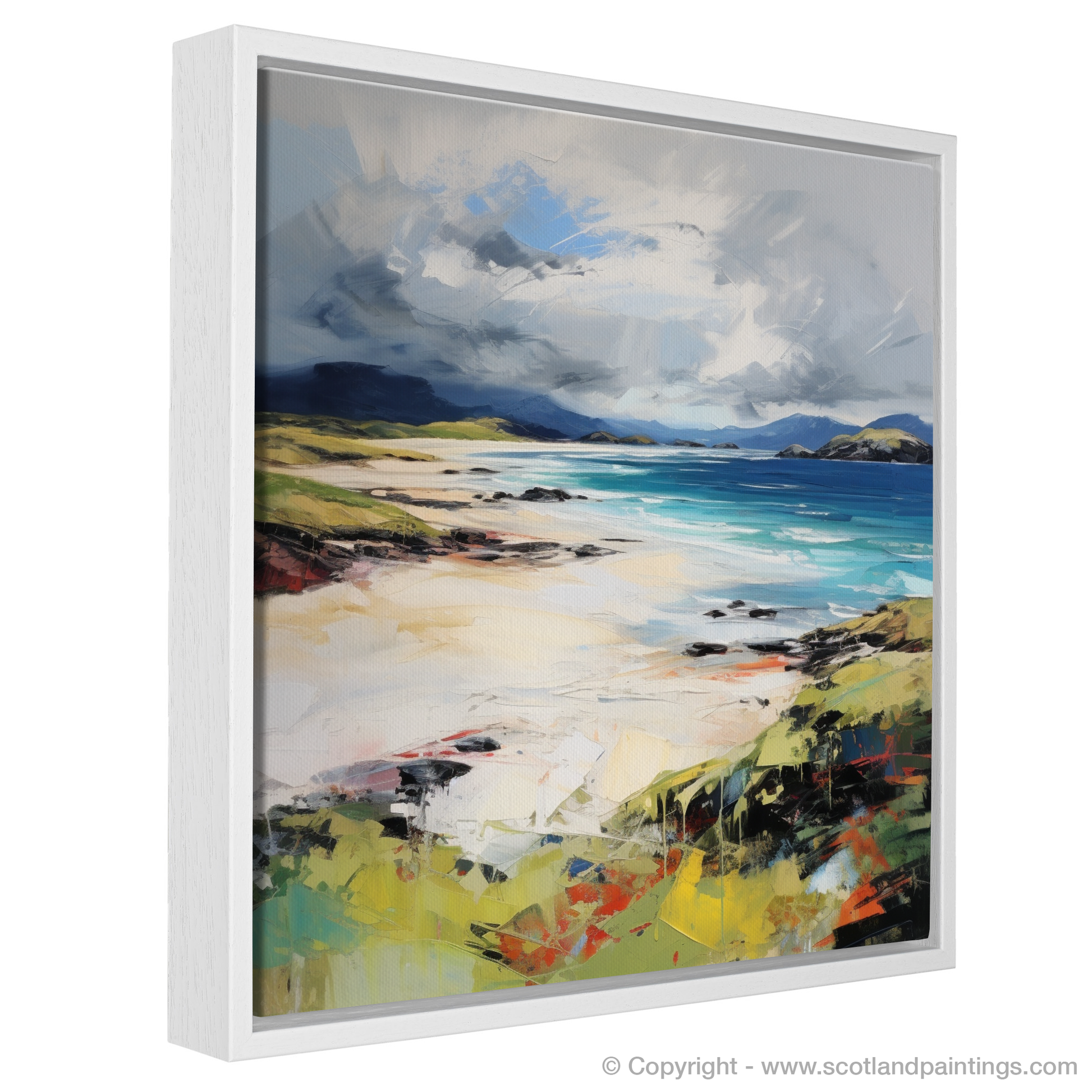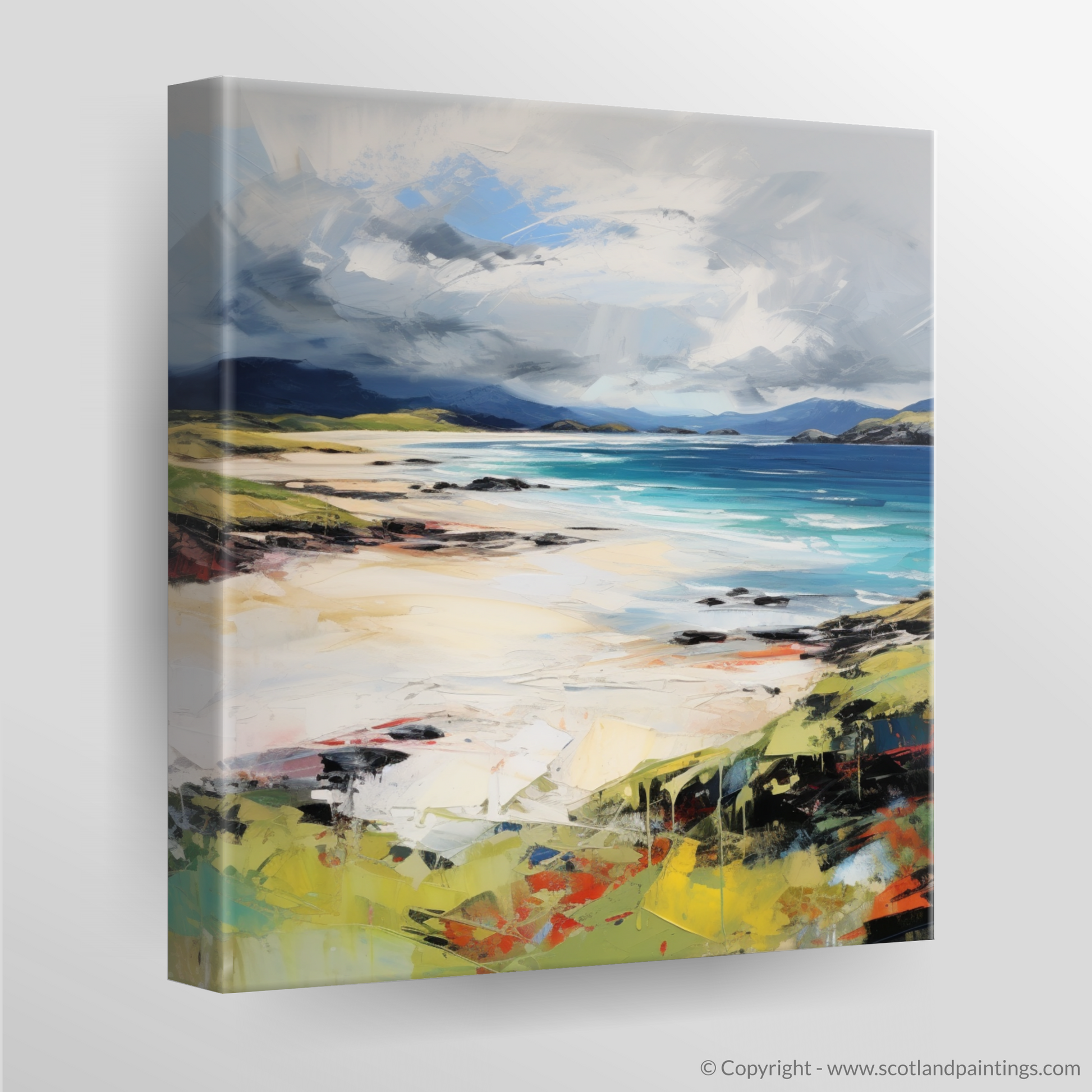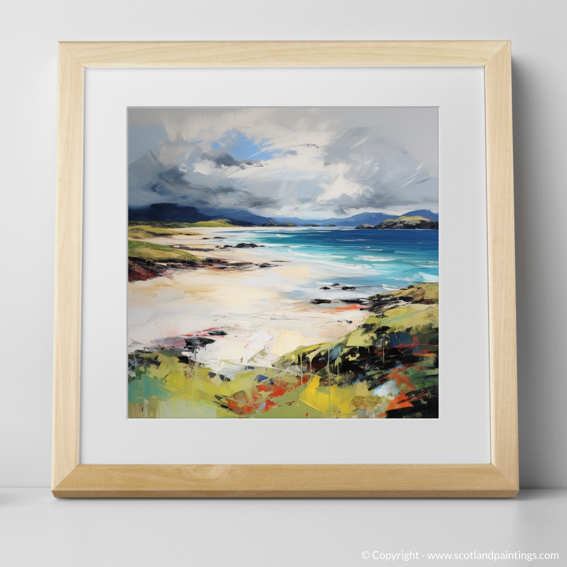 Capture the wild spirit of the Scottish coastline with this evocative print, inspired by the stunning vista of Camusdarach Beach in Arisaig. Rendered in a bold expressionist style, this piece conveys the untamed beauty of this cherished locale through vigorous brushstrokes and a vivid palette.