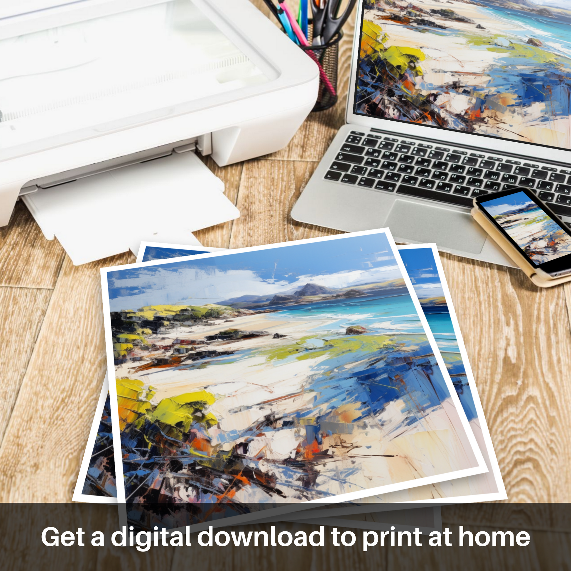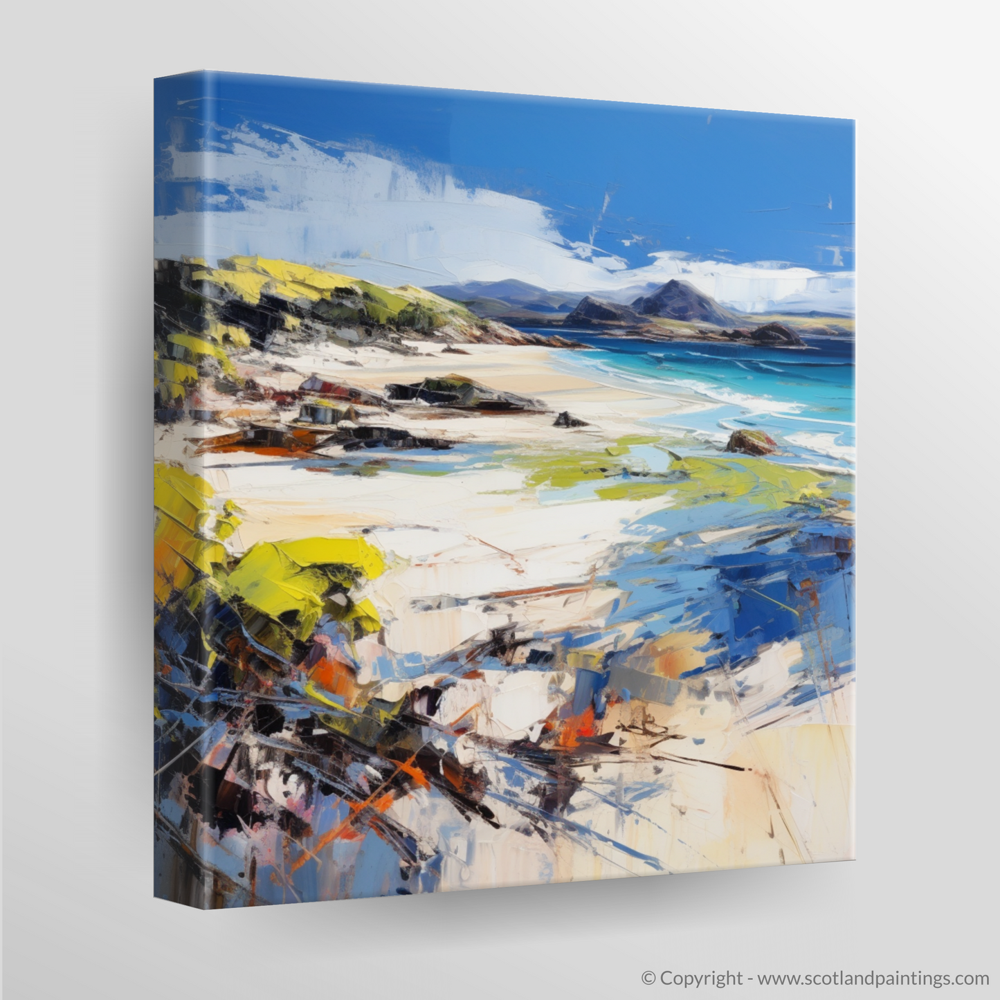 This piece is a testament to the enduring allure of Scotland's beaches, offering an idyllic and dynamic portrayal that is both invigorating and calming. A perfect addition to any space, it invites contemplation and the joy of nature's landscapes into one's home.