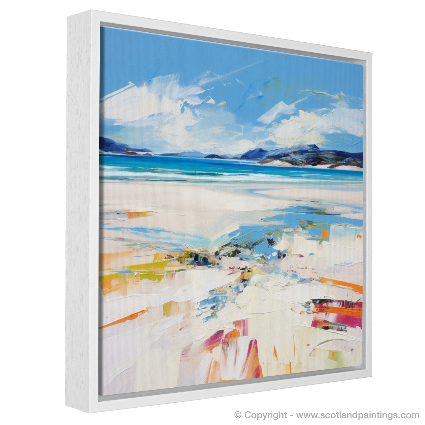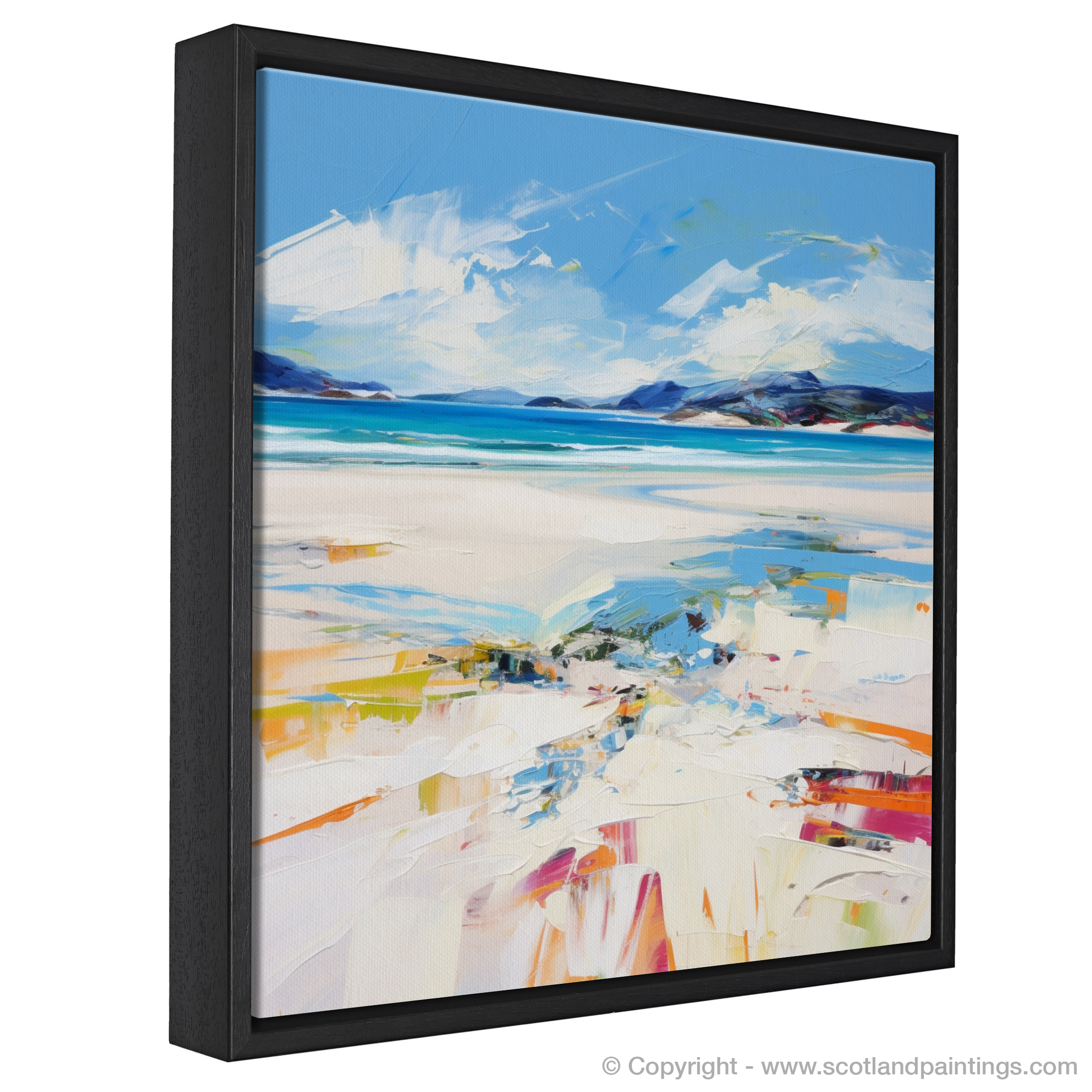 Capturing the wild spirit of the Outer Hebrides, this expressive piece vividly conveys the natural beauty and dynamic atmosphere of Luskentyre Beach on the Isle of Harris. Employing a vibrant palette, the artwork evokes the shifting play of light on the pristine sands, and the mesmerising hues of the Atlantic as it meets the Scottish shore.