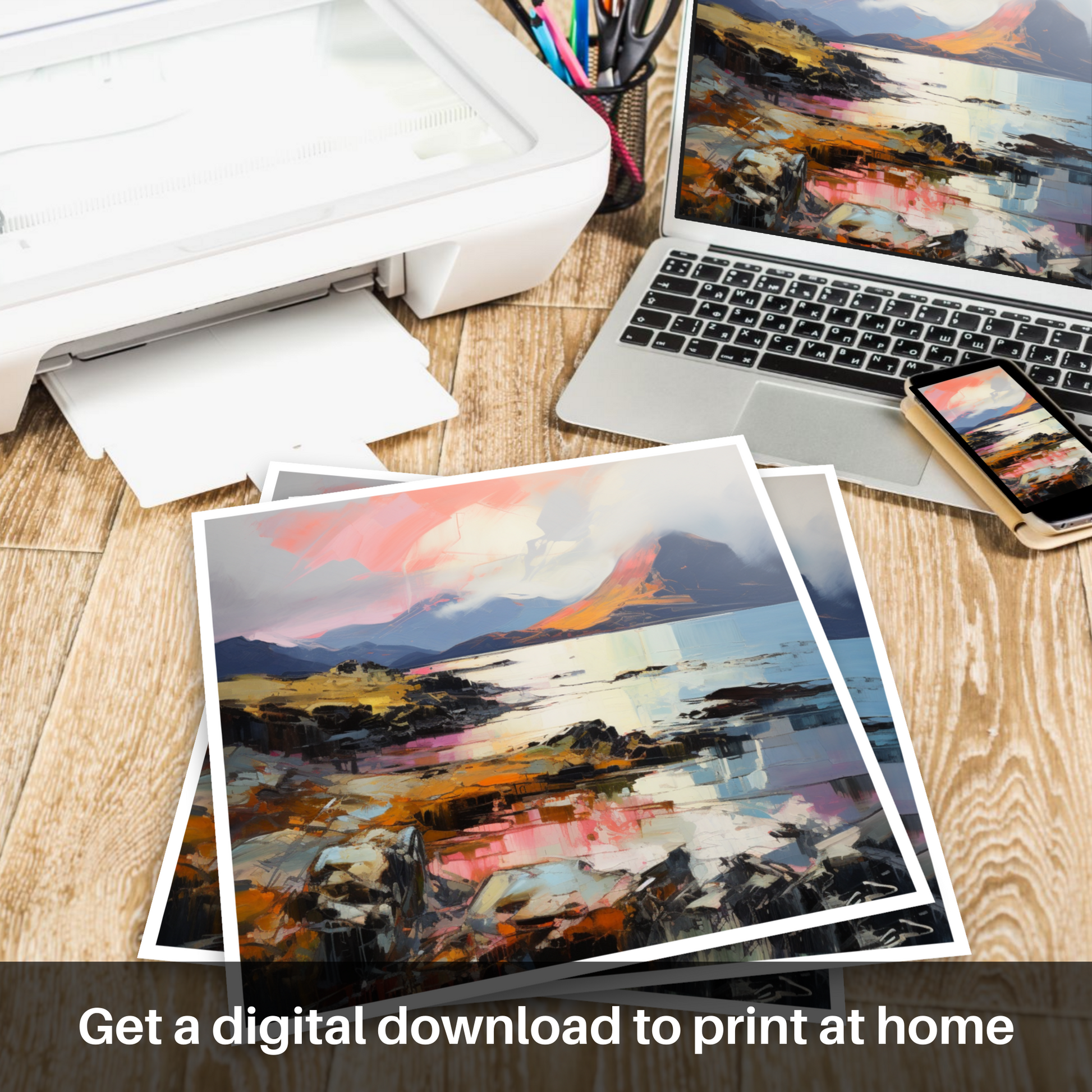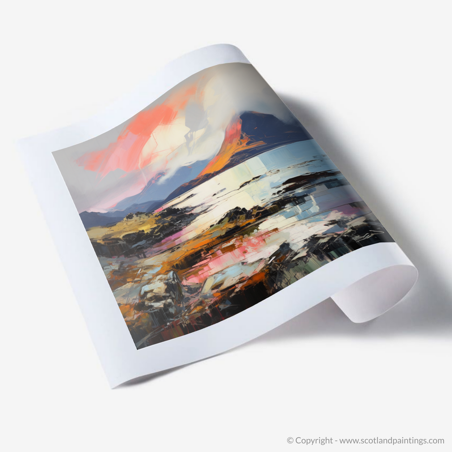 Captivate your senses with a striking print that portrays the raw beauty of the Isle of Rum, nestled in the heart of Scotland's Inner Hebrides. Embrace the passionate brushwork and vivid palette characteristic of the Expressionist movement that breathes life and emotion into this stunning scene.