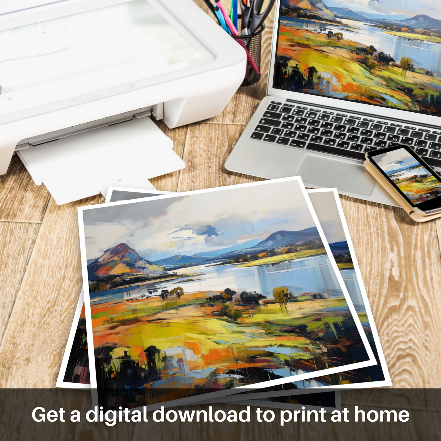 This print, a part of the 'Scottish Lochs' collection, does not merely depict a location but translates the spirit of Loch Leven into a visual language that speaks to the soul with its unbridled expression and emotive power. It invites viewers to interpret and feel the landscape in a deeply personal way, making it a statement piece for any space that values art as an experience.