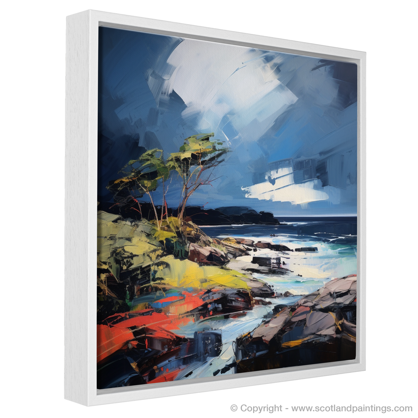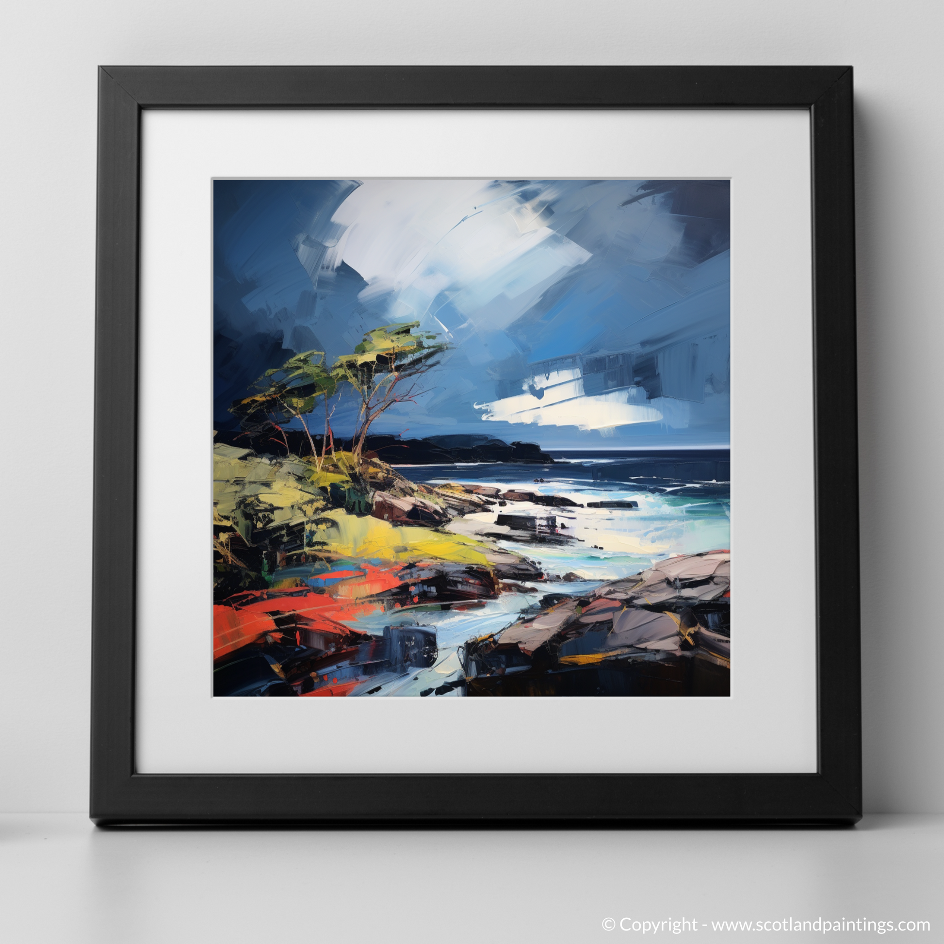 Captured within this expressive print is the raw, untamed beauty of Ardtun Bay, a place where the serene Scottish landscape meets the tempestuous embrace of a stormy sky. The piece is a whirlwind of emotion, showcasing the drama of nature in an expressionistic style that is both arresting and profound.