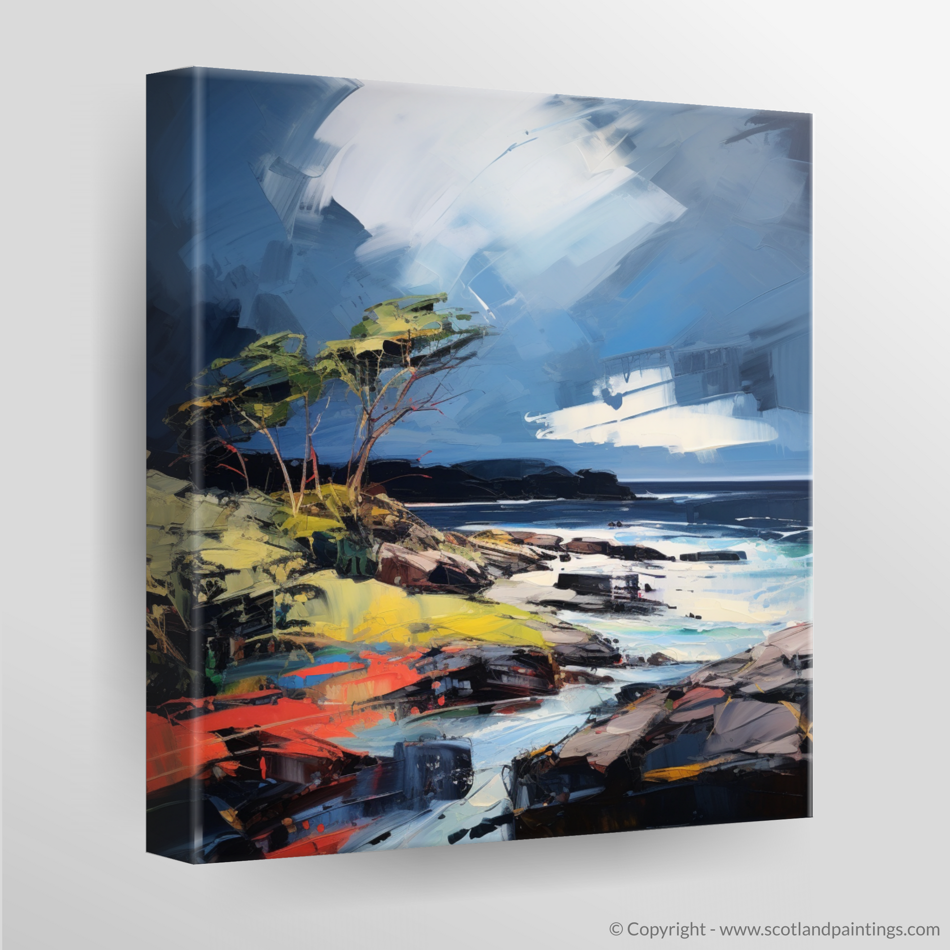 Painting and Art Print of Ardtun Bay with a stormy sky entitled "Tempestuous Ardtun Bay: An Expressionist Ode to Scottish Coves".