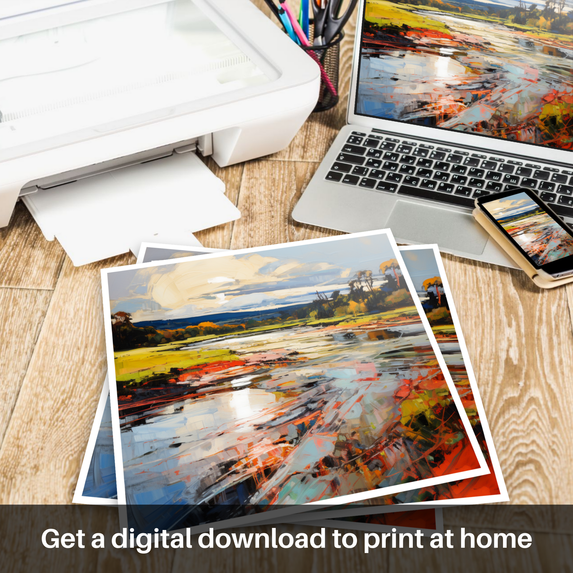 Painting and Art Print of River Nith, Dumfries and Galloway. River Nith Reverie: An Expressionist Ode to Scotland's Vibrant Waterscape.