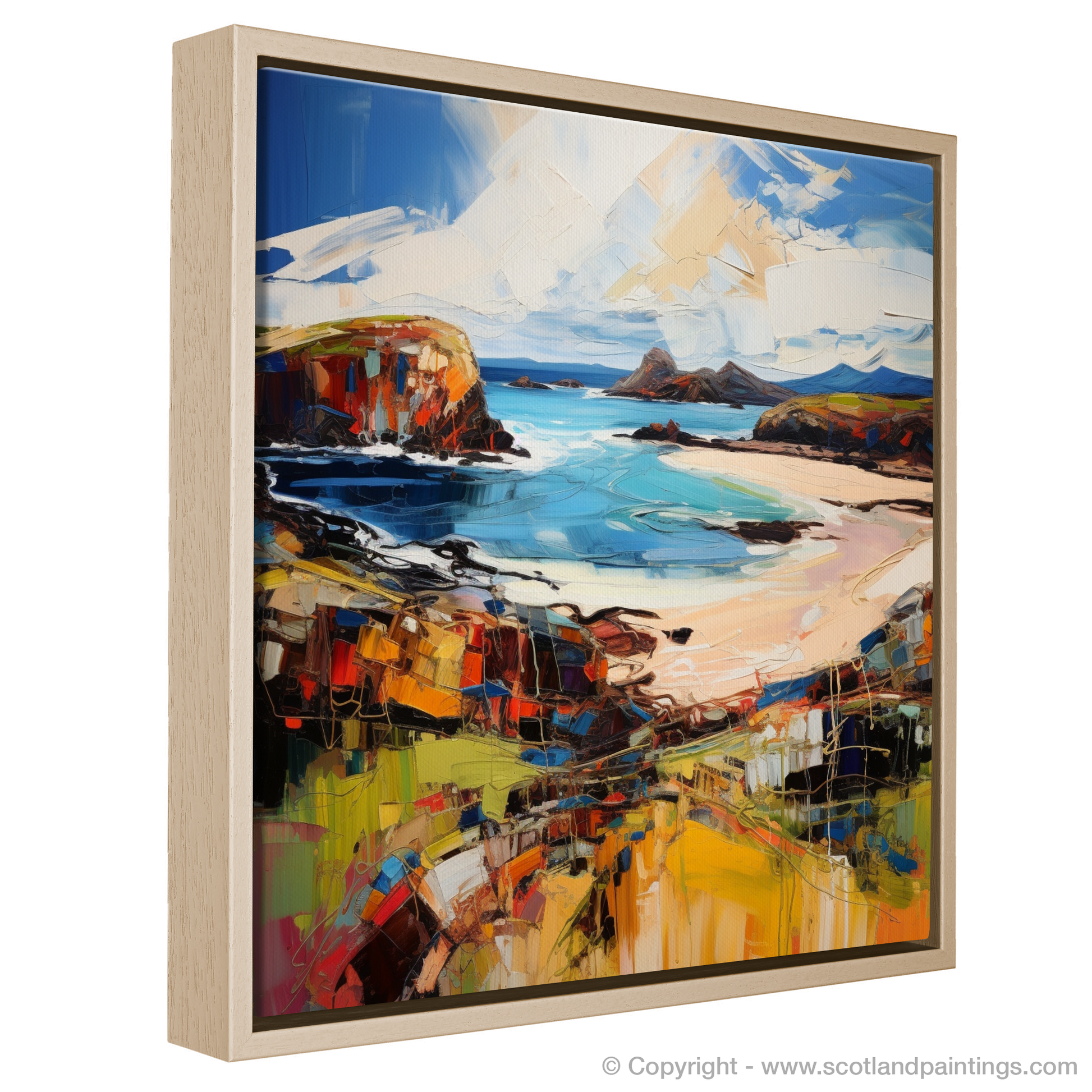 Capturing the rugged beauty of Scourie Bay in Sutherland, this evocative print is a celebration of colour and emotion, exemplifying the very essence of Expressionism. Bold, fluid strokes delineate the sweeping Scottish landscape, where the azure of the sea meets the warmth of the sandy cove.