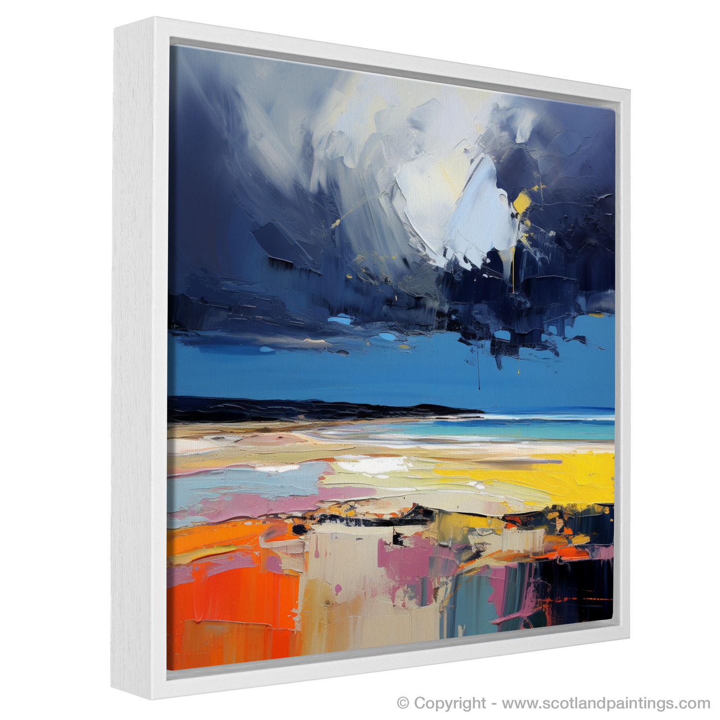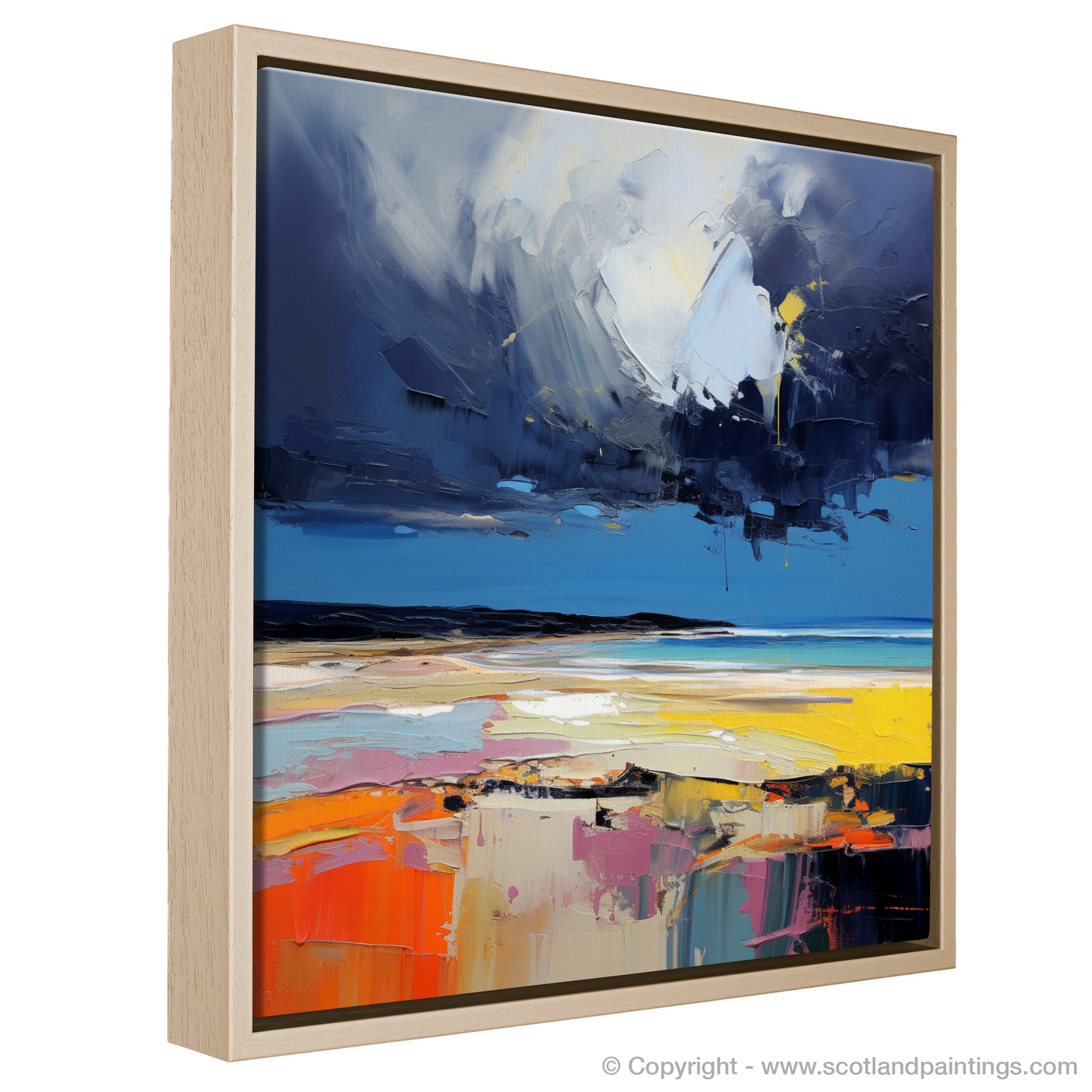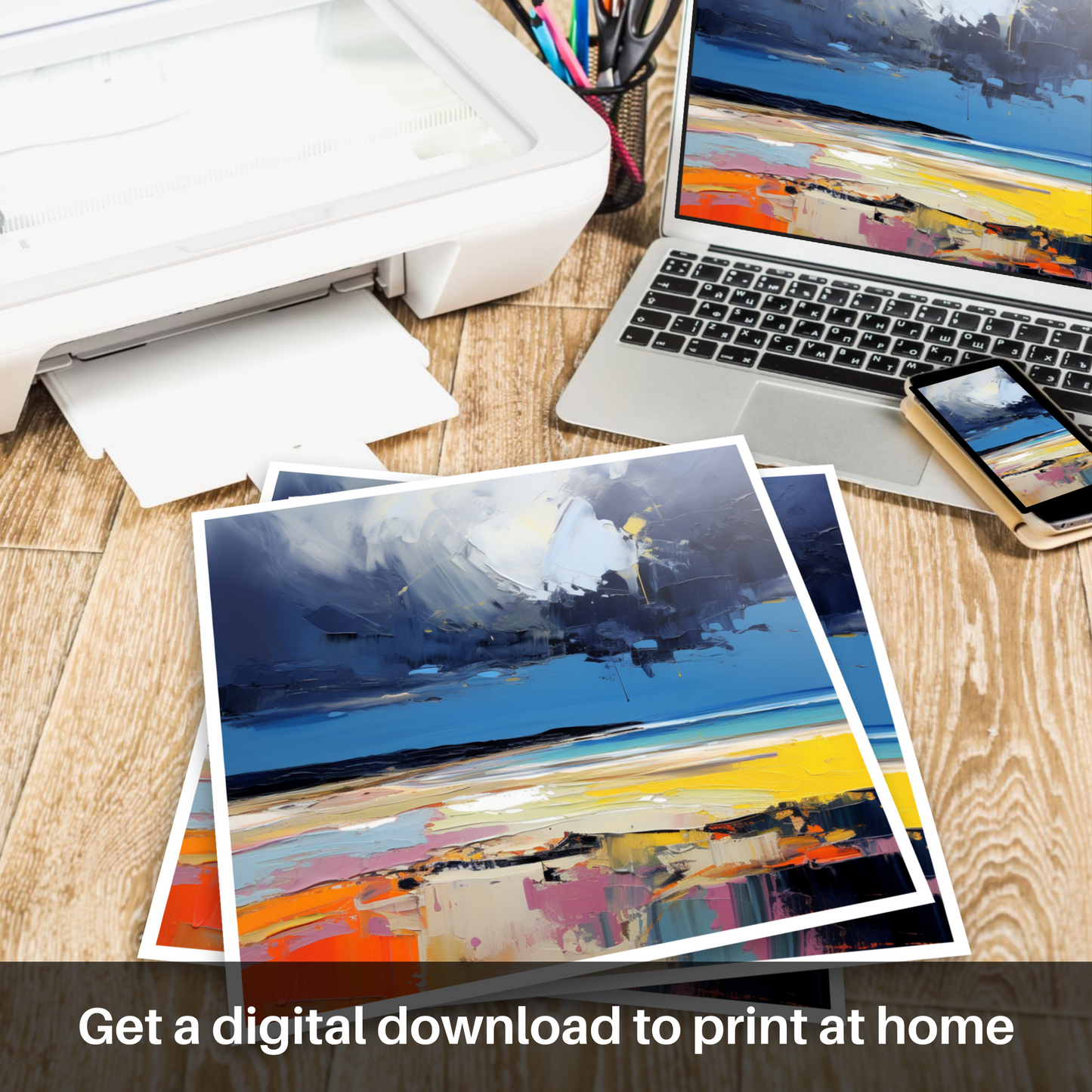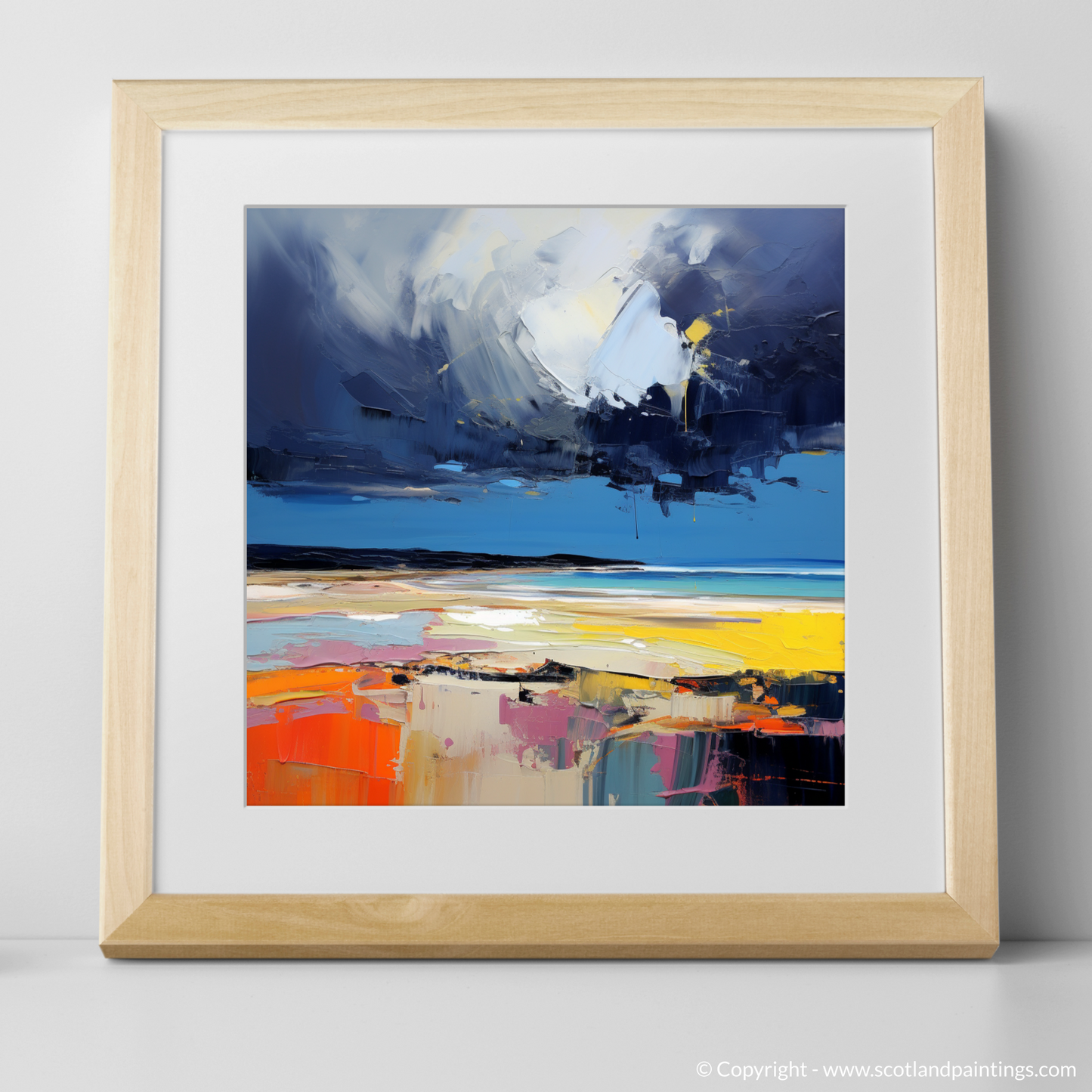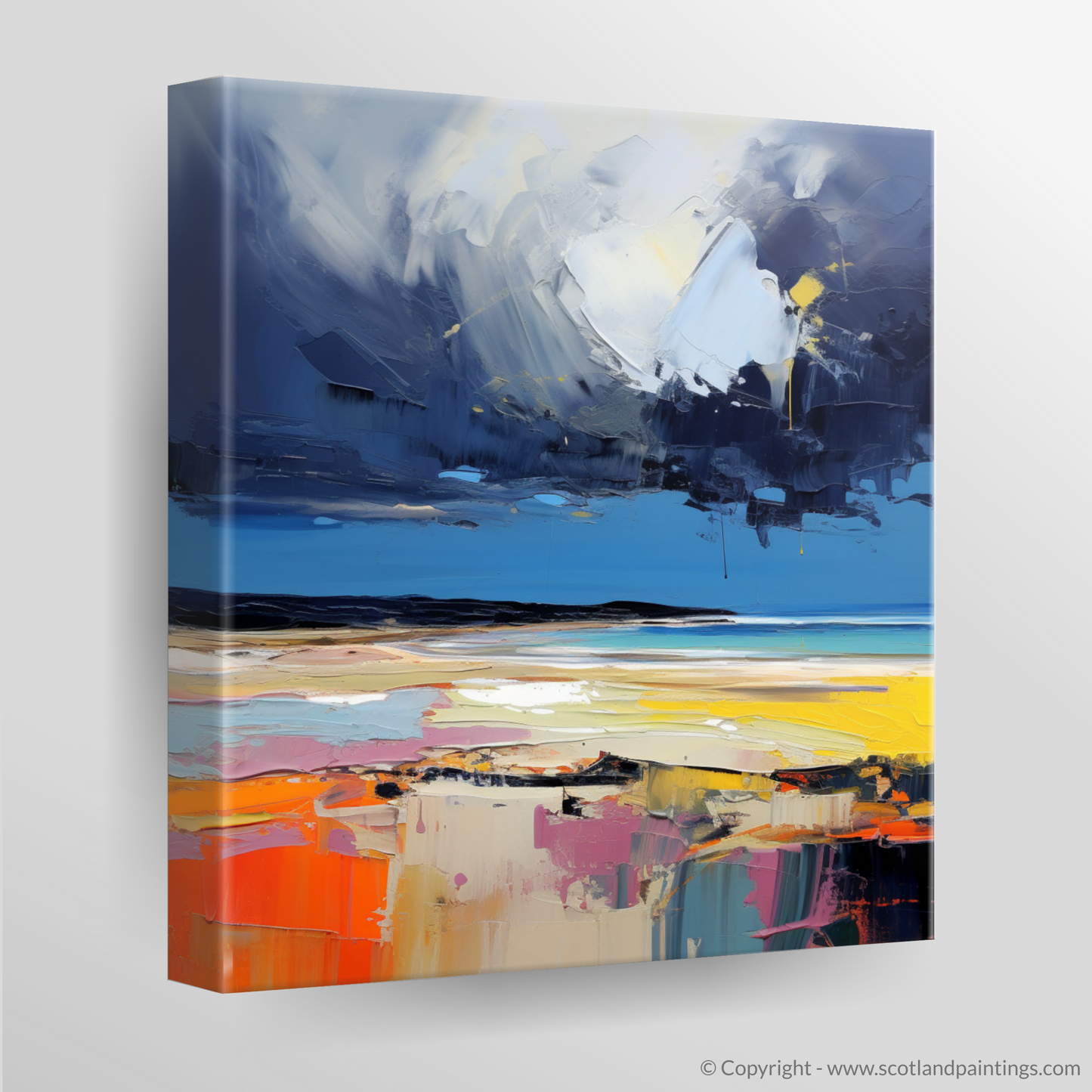 Capturing the tempestuous beauty of Scotland's shores, this evocative print presents a vibrant tableau of West Sands under a brooding sky. The expressive brushwork and palette knife techniques deftly wield a stunning spectrum of colours, portraying an atmospheric scene where land meets sea and sky.