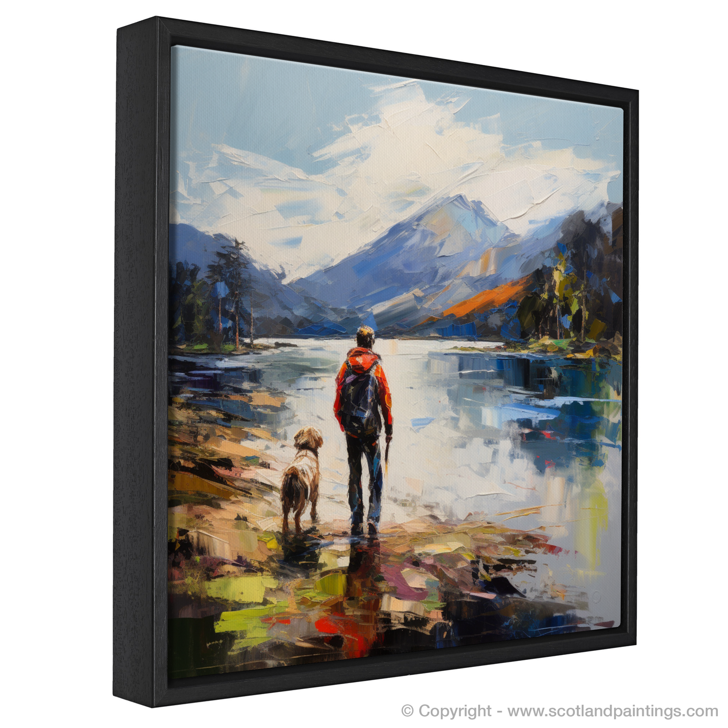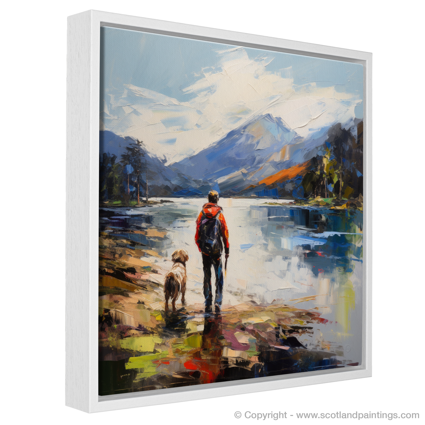 Painting and Art Print of A man walking dog at the side of Loch Lomond entitled "Walking with a Friend by Loch Lomond - An Expressionist Journey".